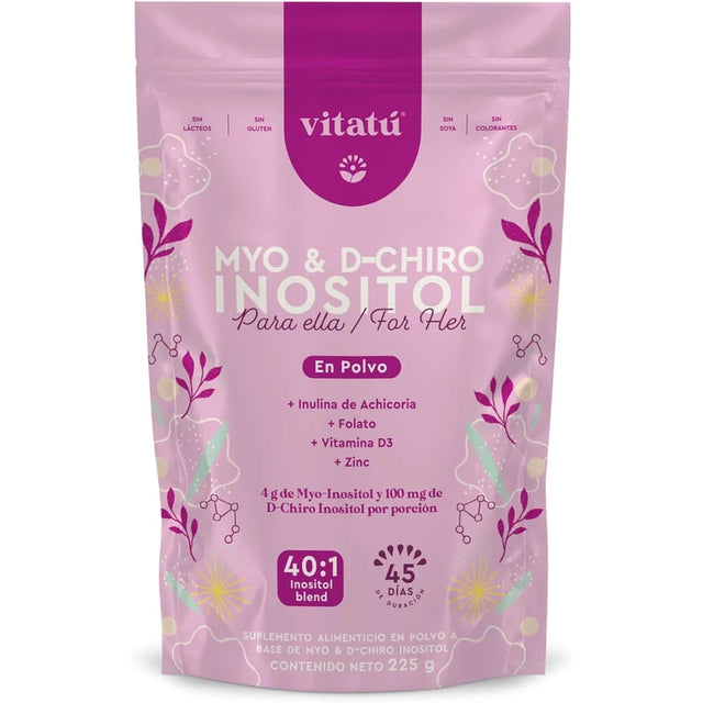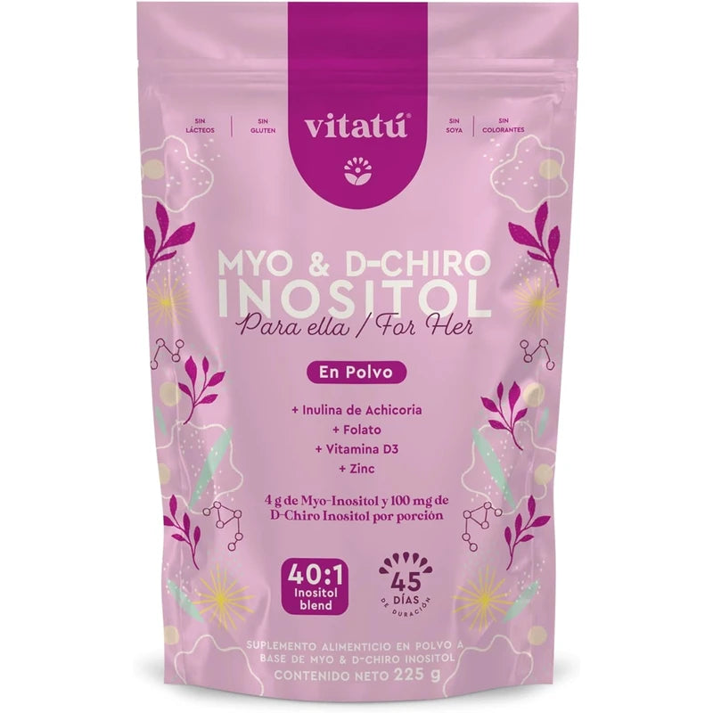 Vitatú | Myo Inositol & D-Chiro Inositol mezcla ideal 40:1 con Folato + Vitamina D3 + Zinc, Suplemento Alimenticio en polvo para Mujeres (225 g c/u), 45 días de duración