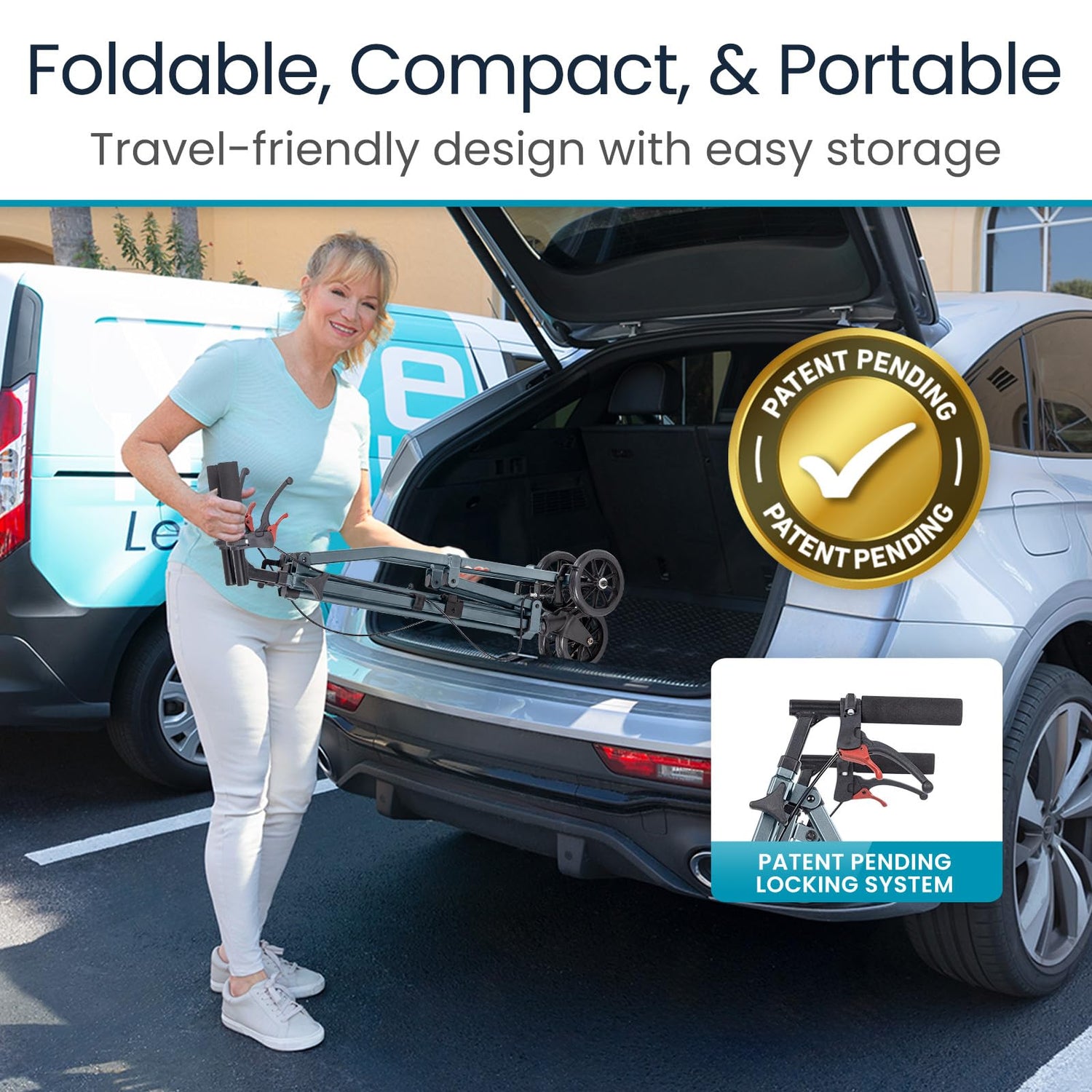 - PRE-ASSEMBLED FRAME WITH ALL-TERRAIN WHEELS: Durable 6-inch wheels glide smoothly over carpets, tile, pavement, and uneven surfaces, making it perfect for home, errands, and travel. Arrives fully assembled—just unfold and go.