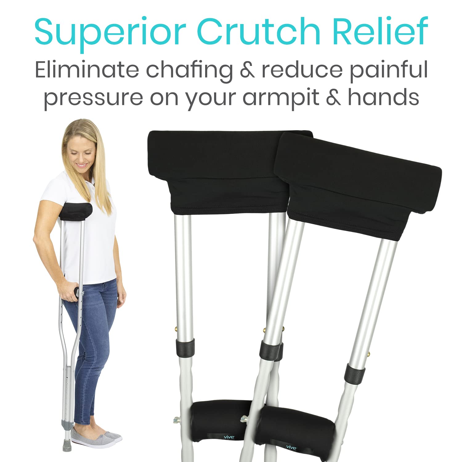- ESSENTIAL CRUTCH COMFORT FROM A TRUSTED BRAND: Enhance your crutch experience with Vive's Crutch Pads and Hand Grips, a vital accessory for anyone using crutches. Crafted with soft, high-density foam padding, these pads offer outstanding comfort all day long. The breathable, moisture-wicking fabric is both washable and clothing-friendly. PLEASE NOTE: This product includes only the crutch pads; crutches are sold separately.