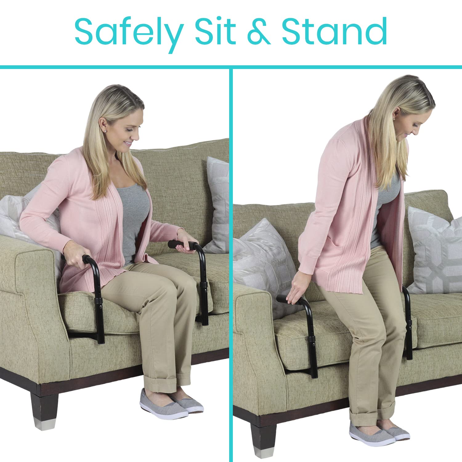 - STAND UP WITH GREATER EASE USING A TRUSTED BRAND: Providing safe, stable assistance, the Stand Assist by Vive allows individuals to rise from chairs, sofas and recliners with greater ease. The dual support handles create a stable foundation for pushing up to a standing position without twisting and turning, minimizing the risk of hazardous falls.