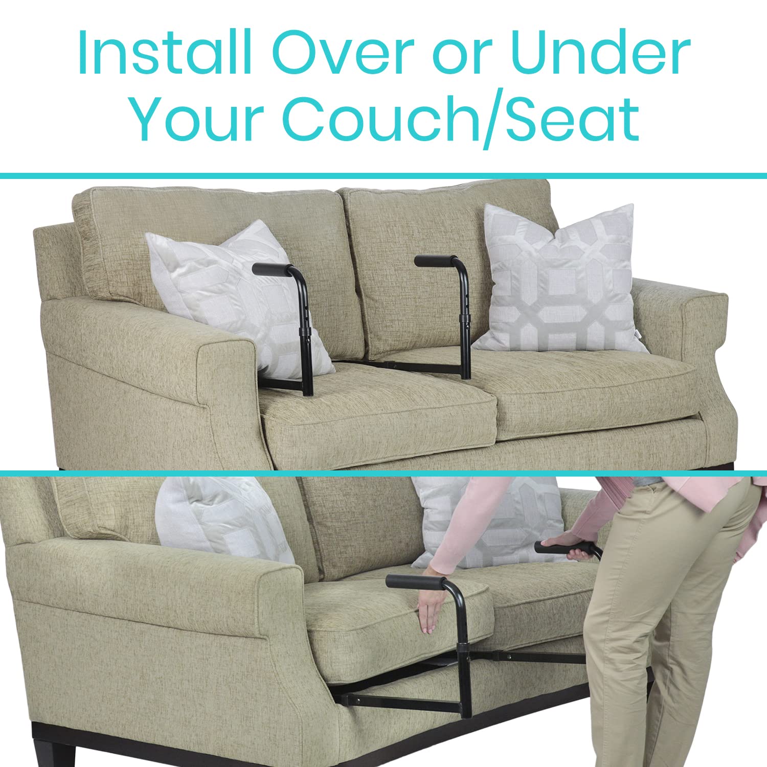 - EASY INSTALLATION: Fitting snugly around the base of secure cushions or beneath loose cushions, the stand assist can be used with any cushioned seat, including plush sofas, recliners and upholstered chairs.