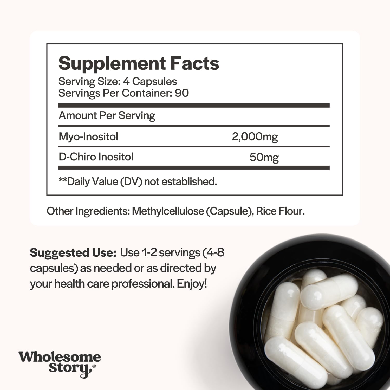 Wholesome Story Myo-Inositol & D-Chiro Inositol Supplement for Women | Fertility Supplements for Hormonal Balance & Ovarian Health Support | Myoinositol | Ideal 40:1 Ratio | 90 Servings