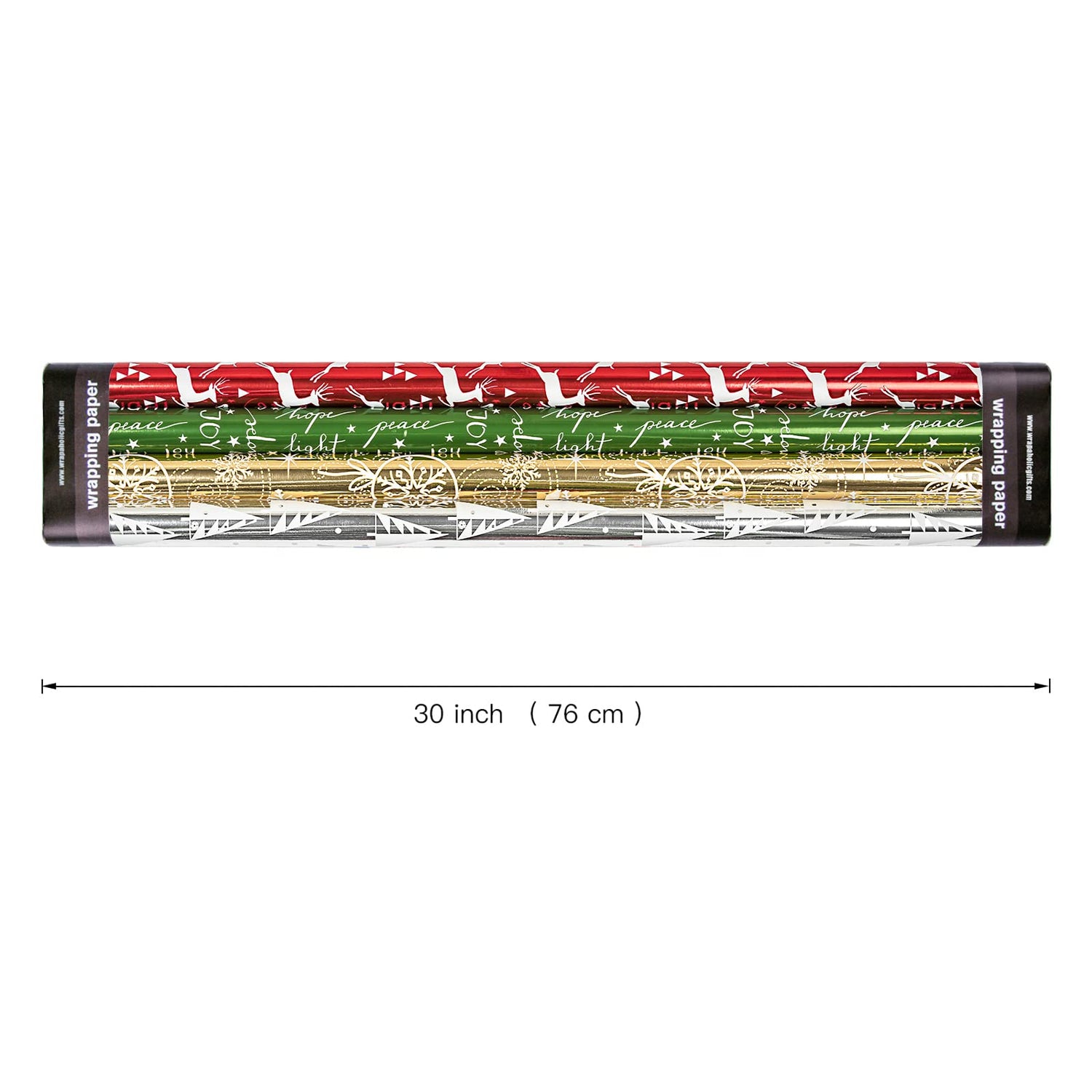 - Perfect Size: Each roll measures 30 inches width by 120 inches length, approx 25 square feet per roll, providing you with a total of 100 square feet of paper, sufficient to cover a wide variety of gift sizes.