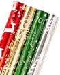 WRAPAHOLIC 30 Inch Christmas Wrapping Paper Roll - Jumbo Roll Red Green Gold and Silver Snowflakes Trees Holiday Collection with Metallic Foil Shine - 4 Rolls - 30 Inch x 120 Inch Per Roll