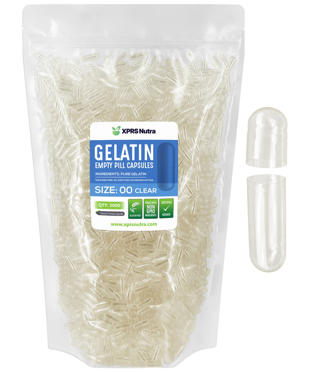 - Choose our convenient 5000 count bulk option. At XPRS Nutra, we go the extra mile to help you attain the highest quality empty capsules 00 to fill your pre-made supplement, vegetable powder, nootropics and fitness gelatin capsules. Our gel capsules empty 00 are here to help make your life easier.