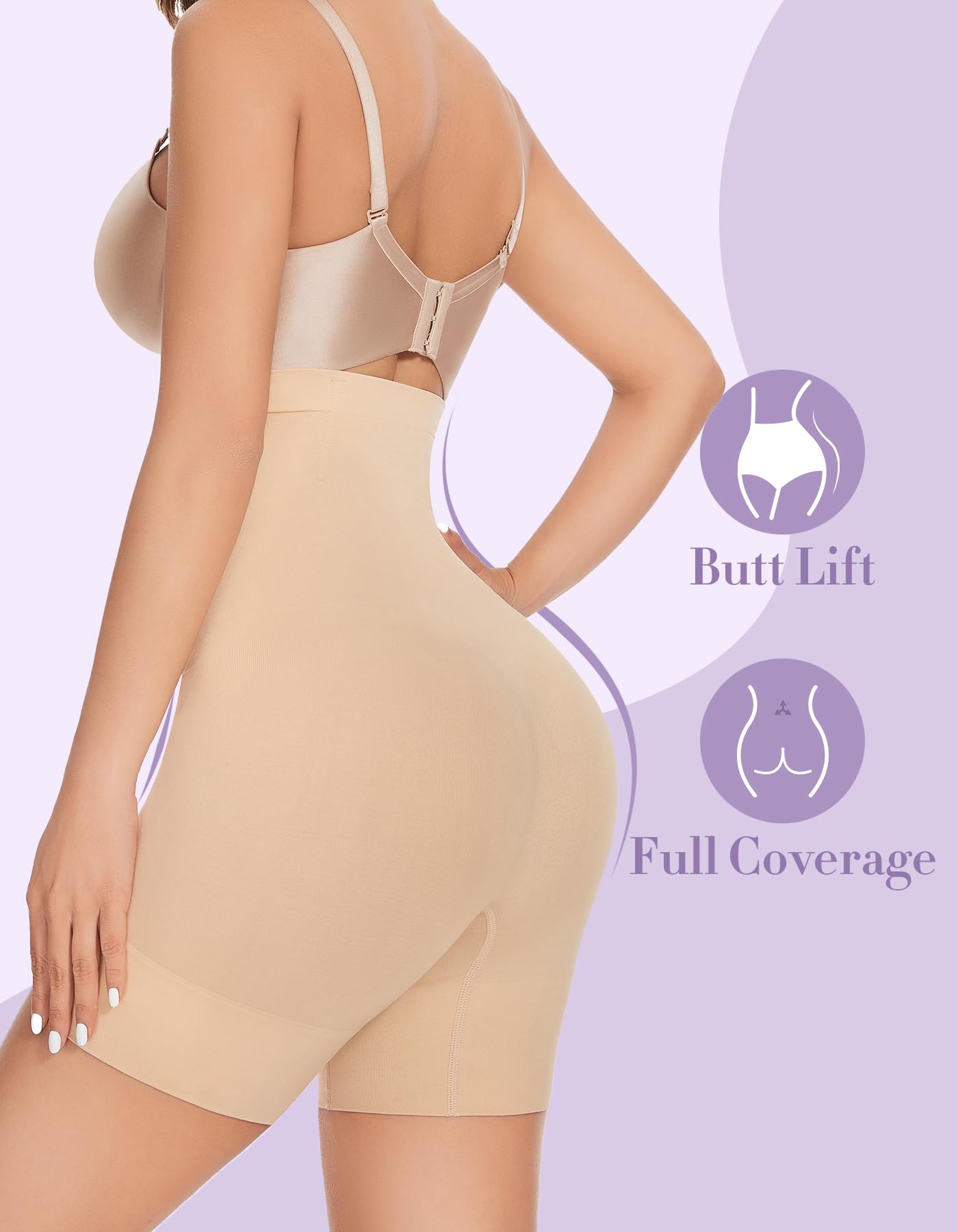 - Tummy Control: Women shapewear shorts adopts elastic high-waist design and elastic leg. They can easily shape waist contours, hips and thighs, making your waist slimmer and your hips plumper, creating an hourglass figure to make you sexier and more eye-catching.