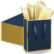 - Exquisite Design: gift bag features the appearance of navy blue and hot stamping golden edge design, carrying handle with navy blue satin ribbon, leaving a deep elegance impression; There is no text on the gift bag, you can write your blessing on the bag to express your feelings