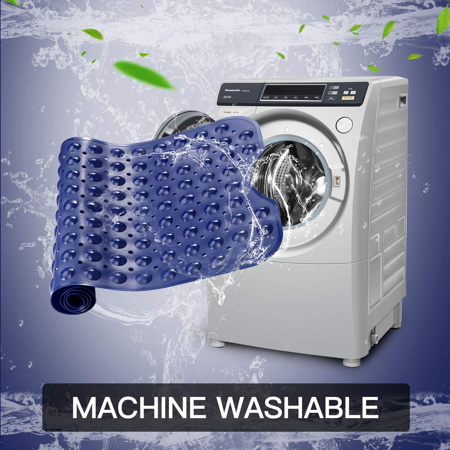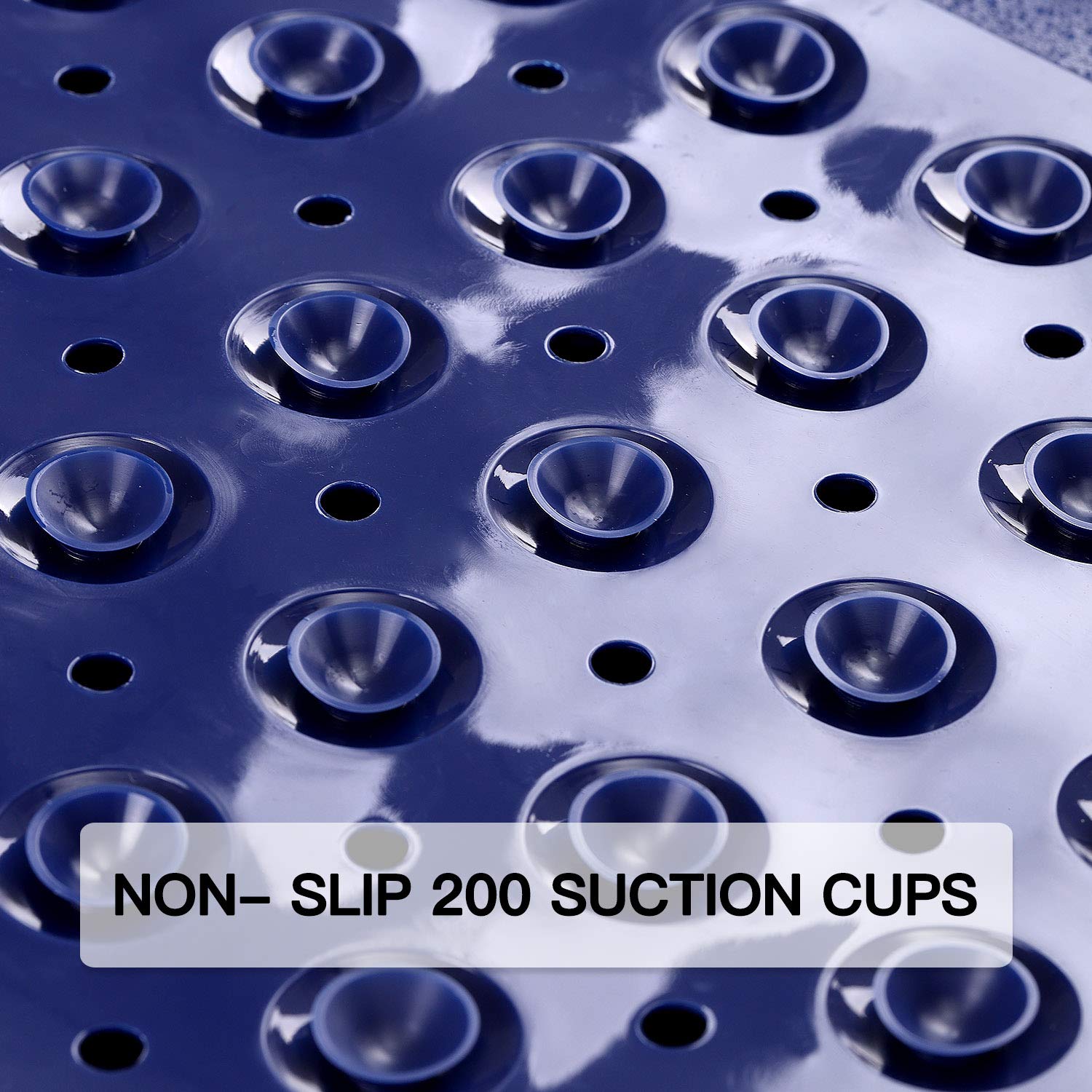 YINENN Bath and Shower Safety Mats 40x16 inch, Non Slip with Suction Cups for Bathroom Stall and Tub Floor, Extra Large and Machine Washable, Drain Holes Keep Bathtub Clean, Dark Blue