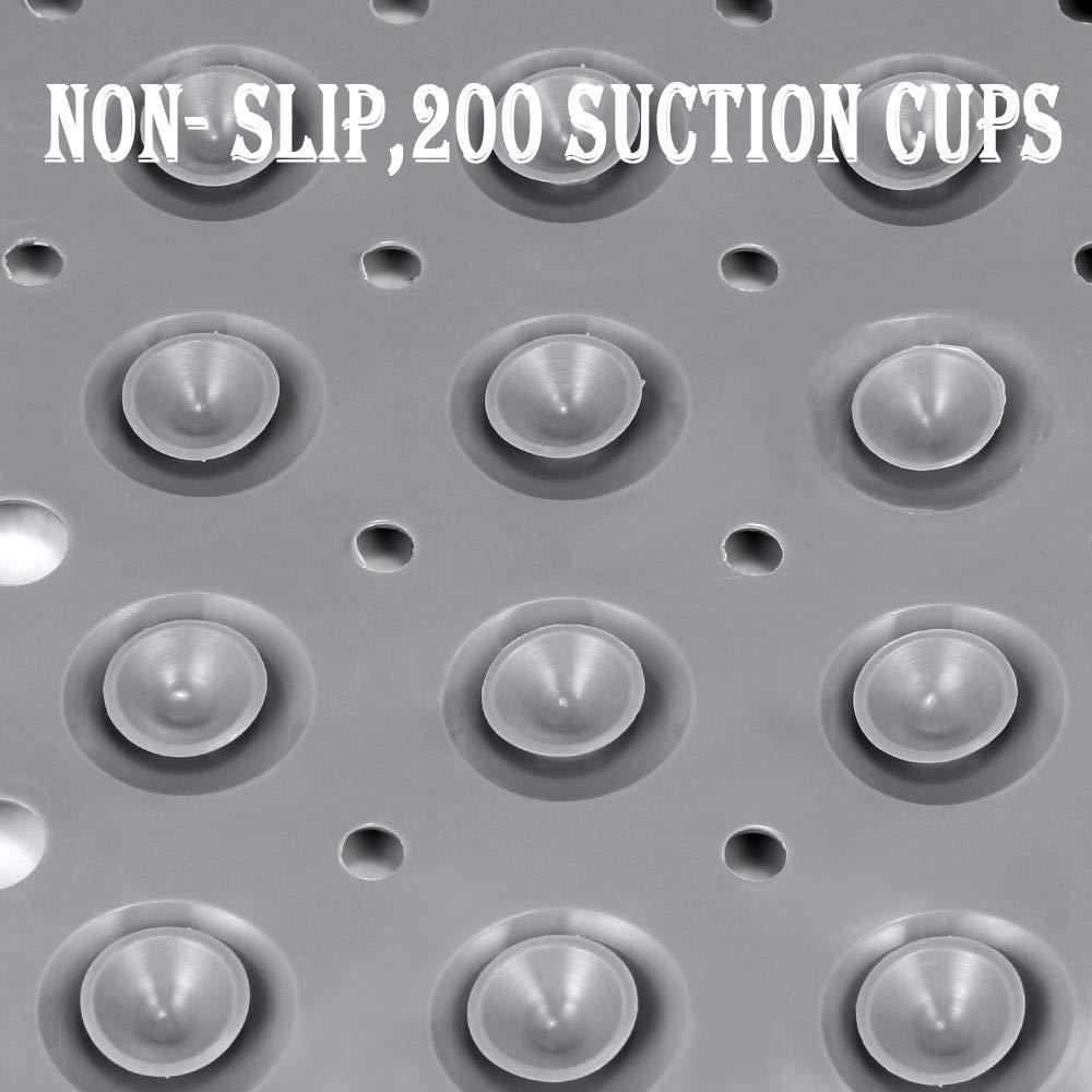 YINENN Bath and Shower Safety Mats 40x16 inch, Non Slip with Suction Cups for Bathroom Stall and Tub Floor, Extra Large and Machine Washable, Drain Holes Keep Bathtub Clean, Grey
