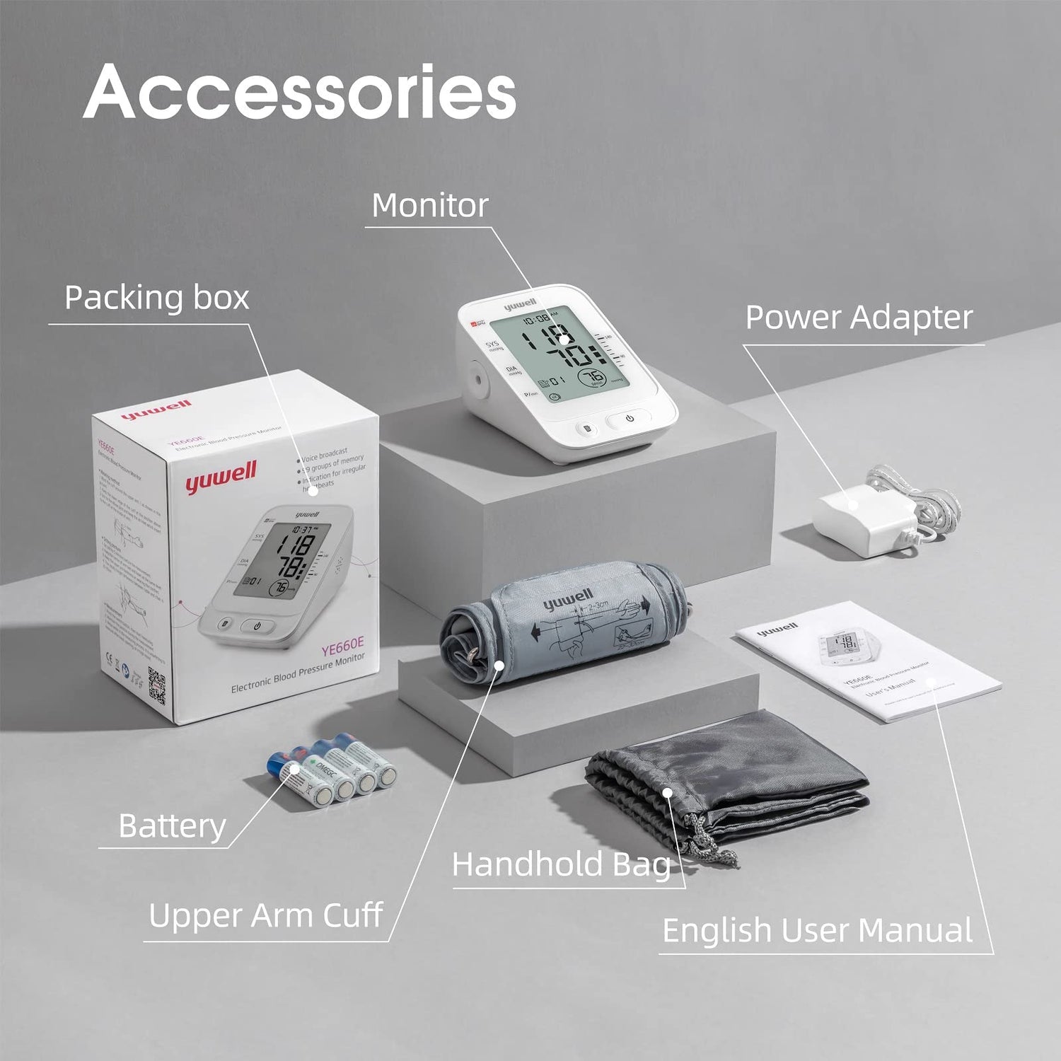 yuwell Blood Pressure Monitor for Home Use, Digital Monitors with Wide Range Arm Cuff, 99 Memories and Voice Broadcating, Batteries and AC Adapter inluded, Style 660 Series
