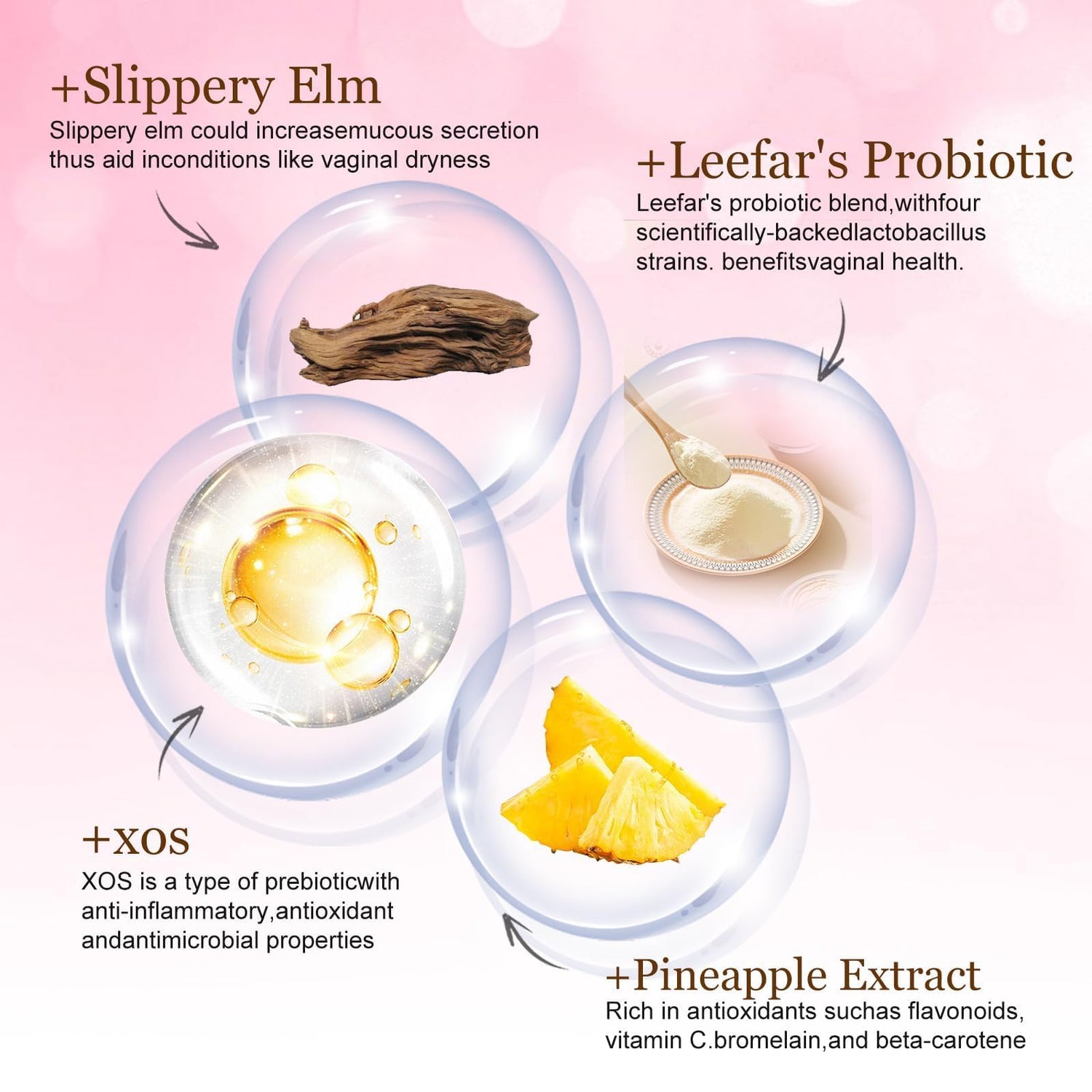 - Each serving contains 400mg Ulmus Rubra, 60mg Leefar Probiotic Blend, 100mg Xylo-oligosaccharides, and 100mg real pineapple.