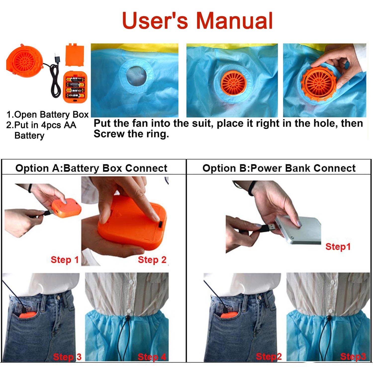 - ZISUEX CLOWN BLOW UP SUIT PACKAGE INCLUDE:clown inflatable costume adult suitable for most adults. clown costume package include 1 x clown inflatable costume,1 x usb mini fan blower,clown blow up costume mini fan is requires 4 AA batteries and USB connected mobile power(not including battery)
