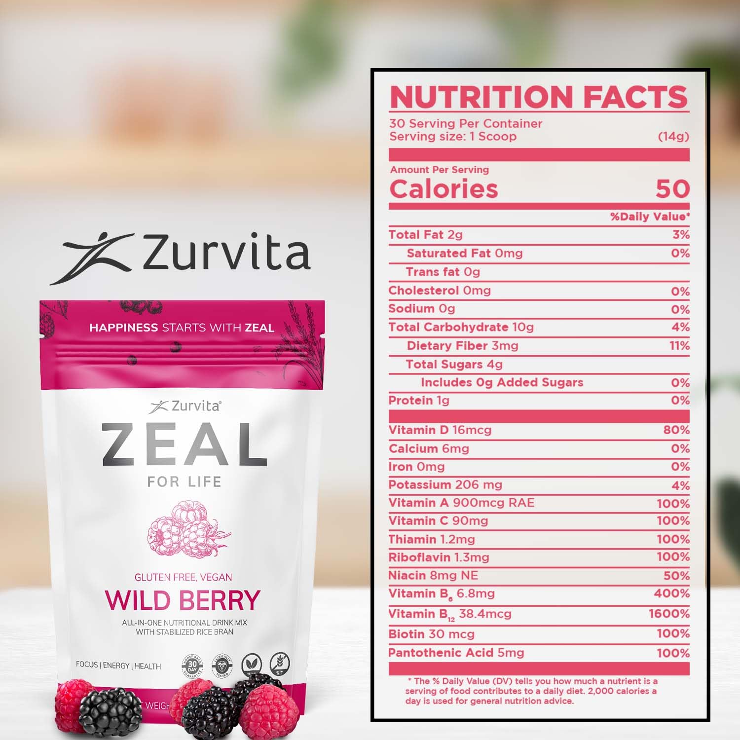 - Berry Flavored - Enjoy delicious wild Berry flavored Zurvita’s all-in-one nutritional drink mix in a 30-serving per Bag mix. (30-Day Wellness Bag, 420 Grams)