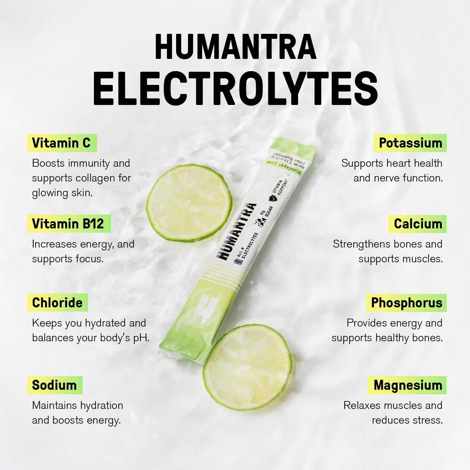 Humantra Himalayan Lime Hydration Packets | Zero Calorie, Zero Sugar Electrolyte Hydration Multiplier w/Essential Minerals, Boost Immune & Metabolic Functions | Electrolytes Powder Immune Support