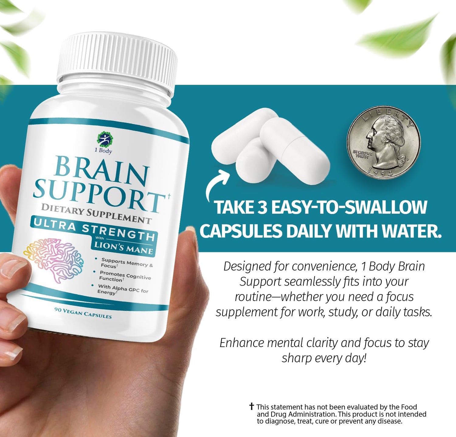 1 Body Brain Supplement – Nootropic Brain Booster with Alpha GPC, Ginkgo & Bacopa – 90 Vegan Capsules – Memory Supplement for Brain Support, Focus Pills, Brain Fog Supplements for Women and Seniors is backordered and will ship as soon as it is back in stock.