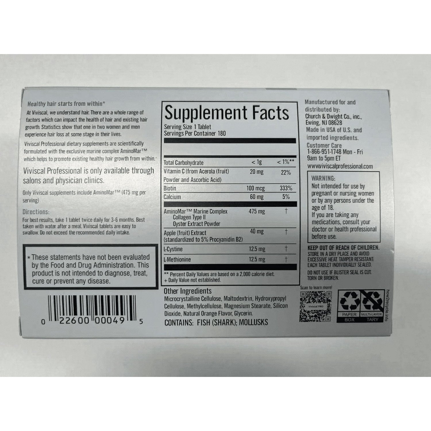 100%Authentic VIVISCAL PROFESSIONAL PRO Hair Growth 180 tablets pills