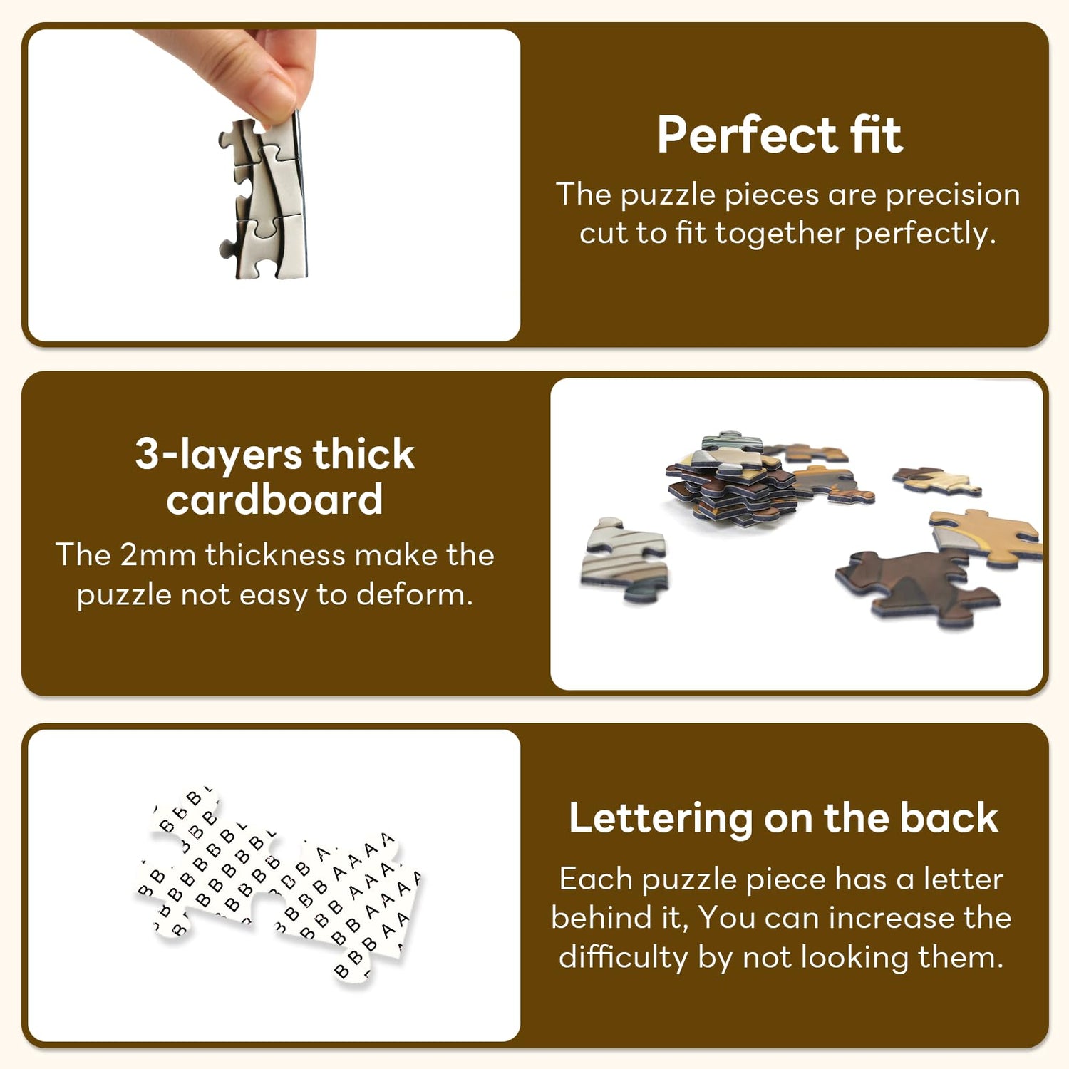 - Perfect Puzzle Game: Exercise your hand-eye coordination, motor skills, problem solving, etc. The back of the puzzles 1000 piece is divided into several areas, marked with English letters "A" "B"... It makes the 1000-piece puzzle easier.