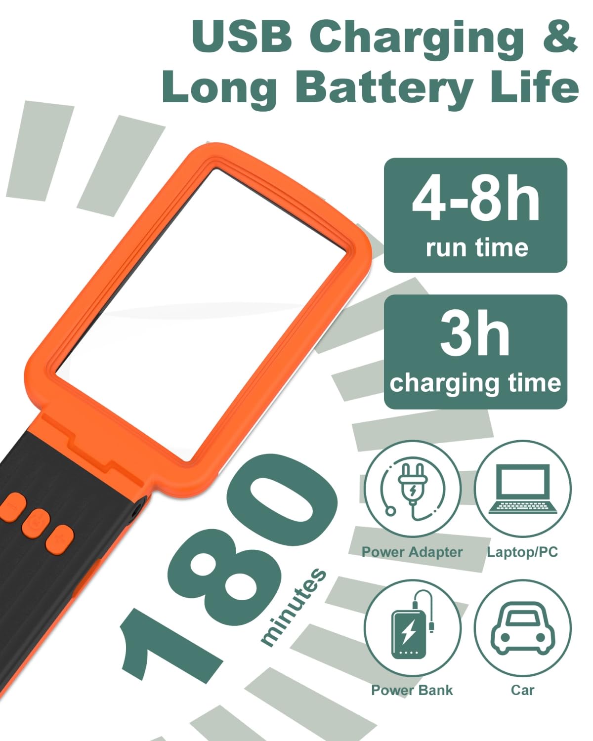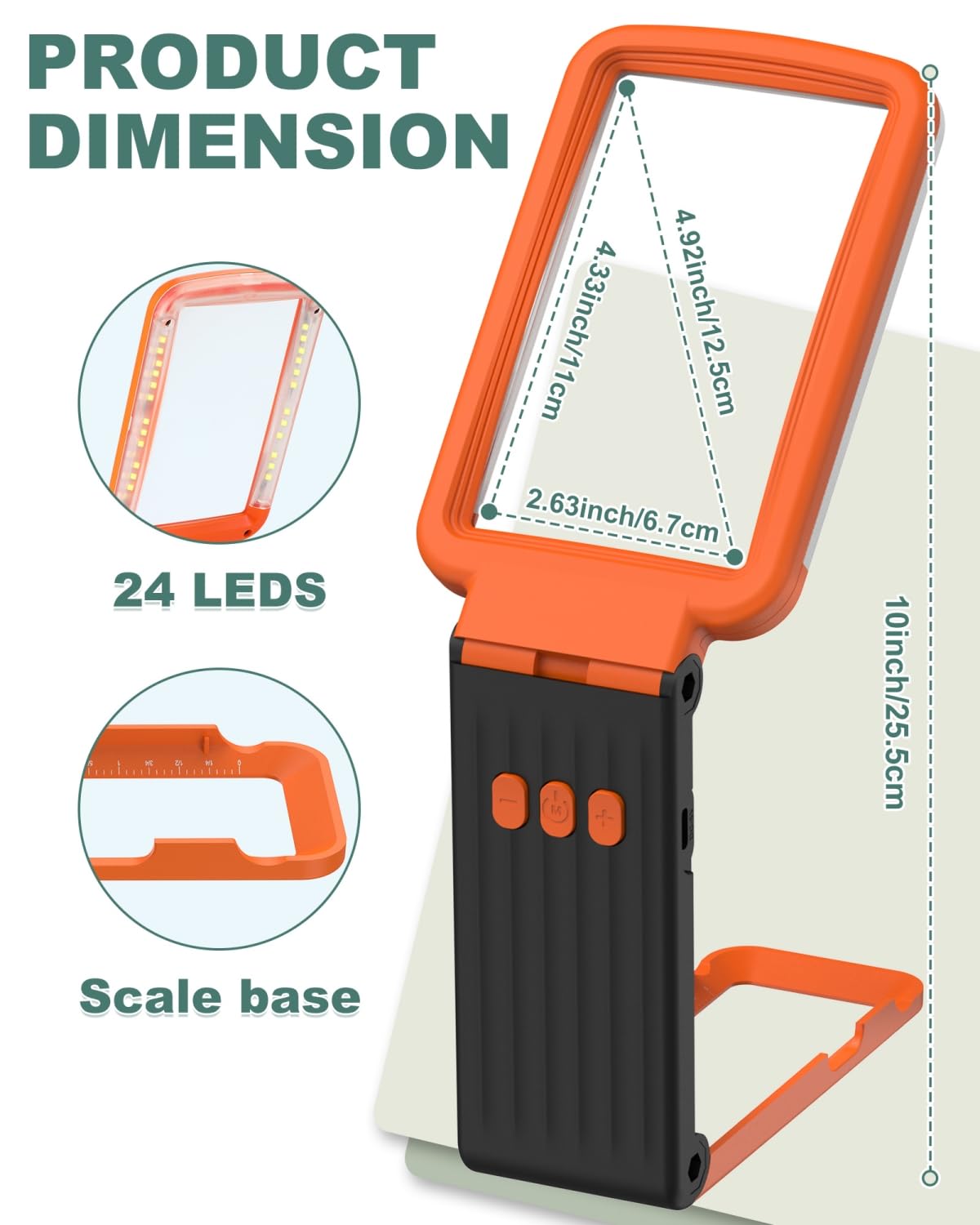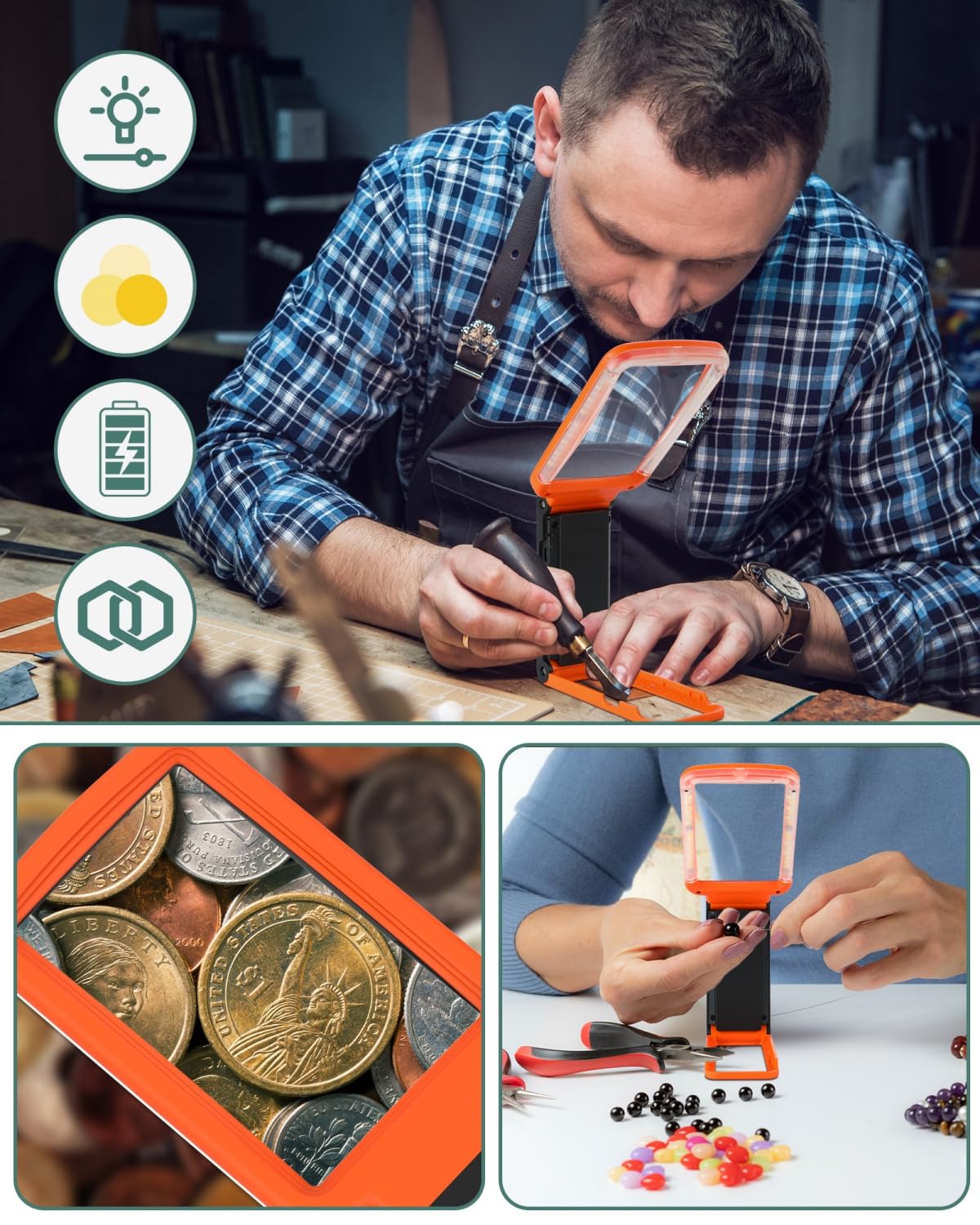 - Versatile Folding Design: Enjoy the flexibility of a handheld or desktop magnifying glass! Our innovative folding design lets you easily switch between using it in hand or setting it up on a table, making it perfect for any task.