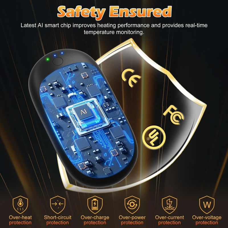 - [Safe and Reusable Electric Hand Warmer] Reusable hand warmers are more environmentally friendly and cost-saving than disposable hand warmers. Certified by UL/CE/FCC, they prevent overcharging, overheating or short circuit, ensuring user safety. We provide 12 months warranty, if you have any problems with our hand warmer, please contact us.