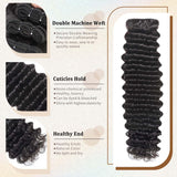 - Bundles Human Hair Texture:12A Grade 3 Bundles Deep Wave Human Hair Machine Made Double Weft Curly Bundles Human Hair,Tight and Durable Double Weft,Tangle Free,No Shedding,Full and Thick,Natural and Shiny.Can be Curled, Bleached, Dyed