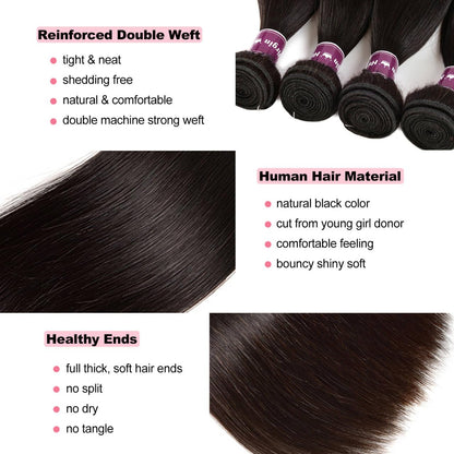 - 【Per Package】straight hair 4 bundles + free random gifts, can be enough to do a full head, true to length and full to weight.