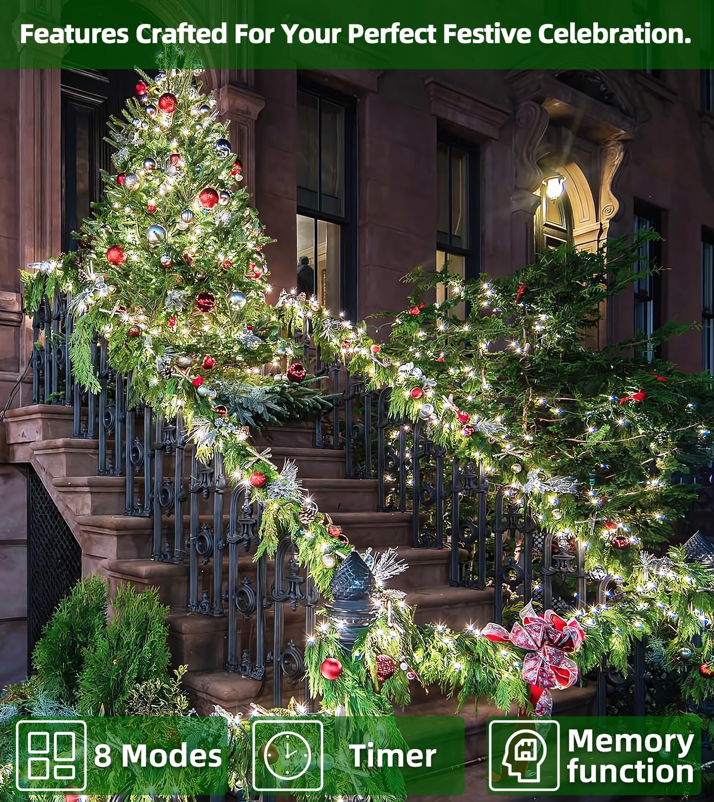 - Stress-Free Setup: Don’t want to fiddle with your Christmas lights every day? We’ve got you covered. The built-in timer function means your lights automatically turn on and off at the same time each day, while the memory function remembers your favorite light mode, so you don’t have to reset it. Just set it once and enjoy the perfect Christmas atmosphere with no daily hassle! Whether you prefer steady glow or playful, flashing lights, 8 lighting modes to suit any mood or occasion