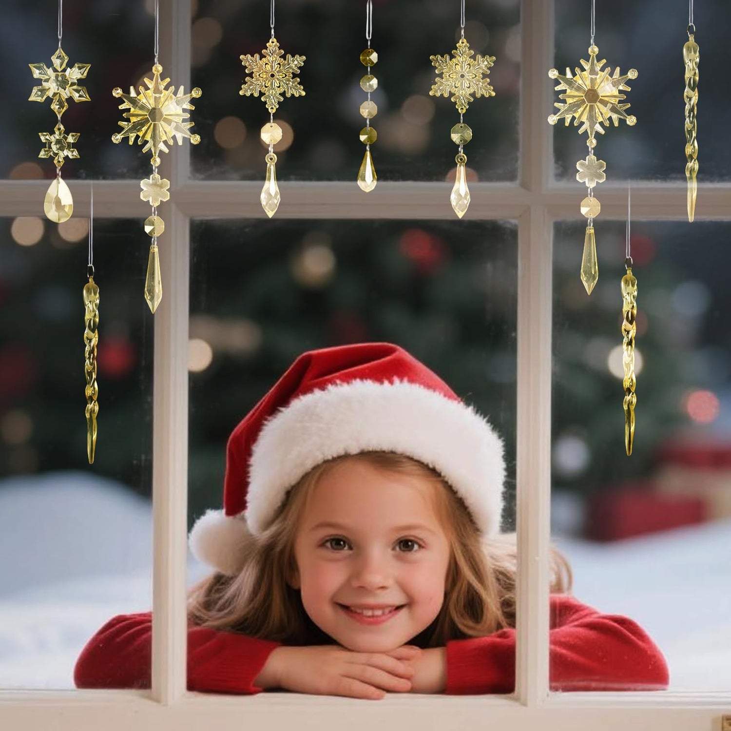 - Package: You will receive a great value pack of 18 pieces Gold acrylic Christmas ornaments set in 5 styles, including 8pcs unique designed snowflakes ornaments (5.2", 4.92" and 7.64"), 5pcs 5.3" crystal icicles ornament and 5pcs 5" bead garlands.