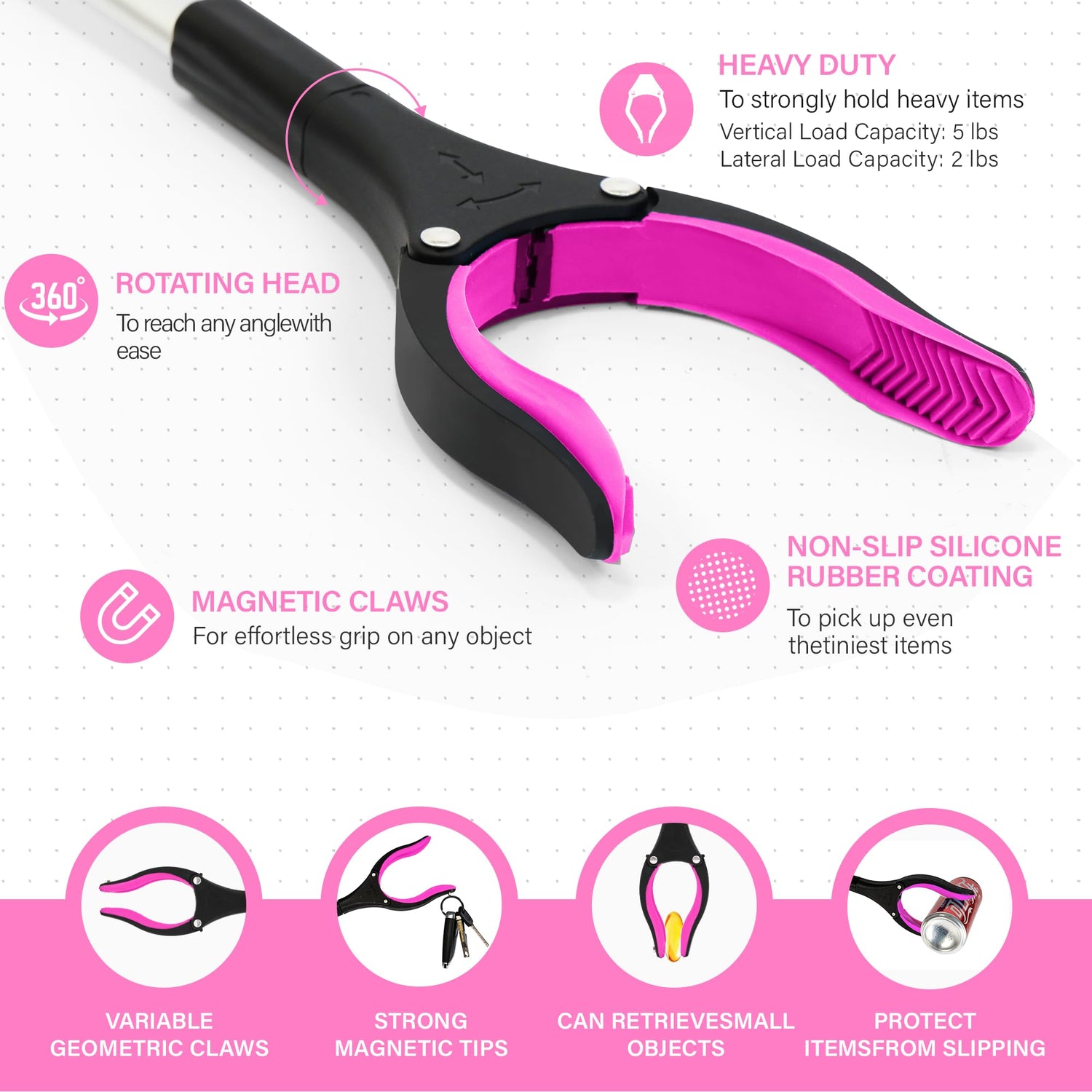 2 Pack 32 inch GrabRunner FDA Registered Reacher Grabber Tool with Strong Magnetic and Swivel Head (New Pink)