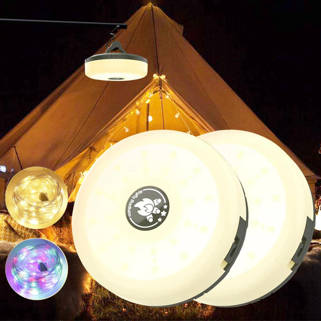 - 4 in 1 Multifunctional Camping Lights — MDCMLKS camping lights string is an all-in-one camping gear that combines a camping lights, light strings, work lights, and flashlights. Not only serve as camping lighting, emergency lighting, flashlight, and distress signal light, but you can also use this 32.8ft light strings for home decoration, tent decoration, birthday and holiday decorations, Christmas tree decoration, creating a romantic and warmth atmosphere.