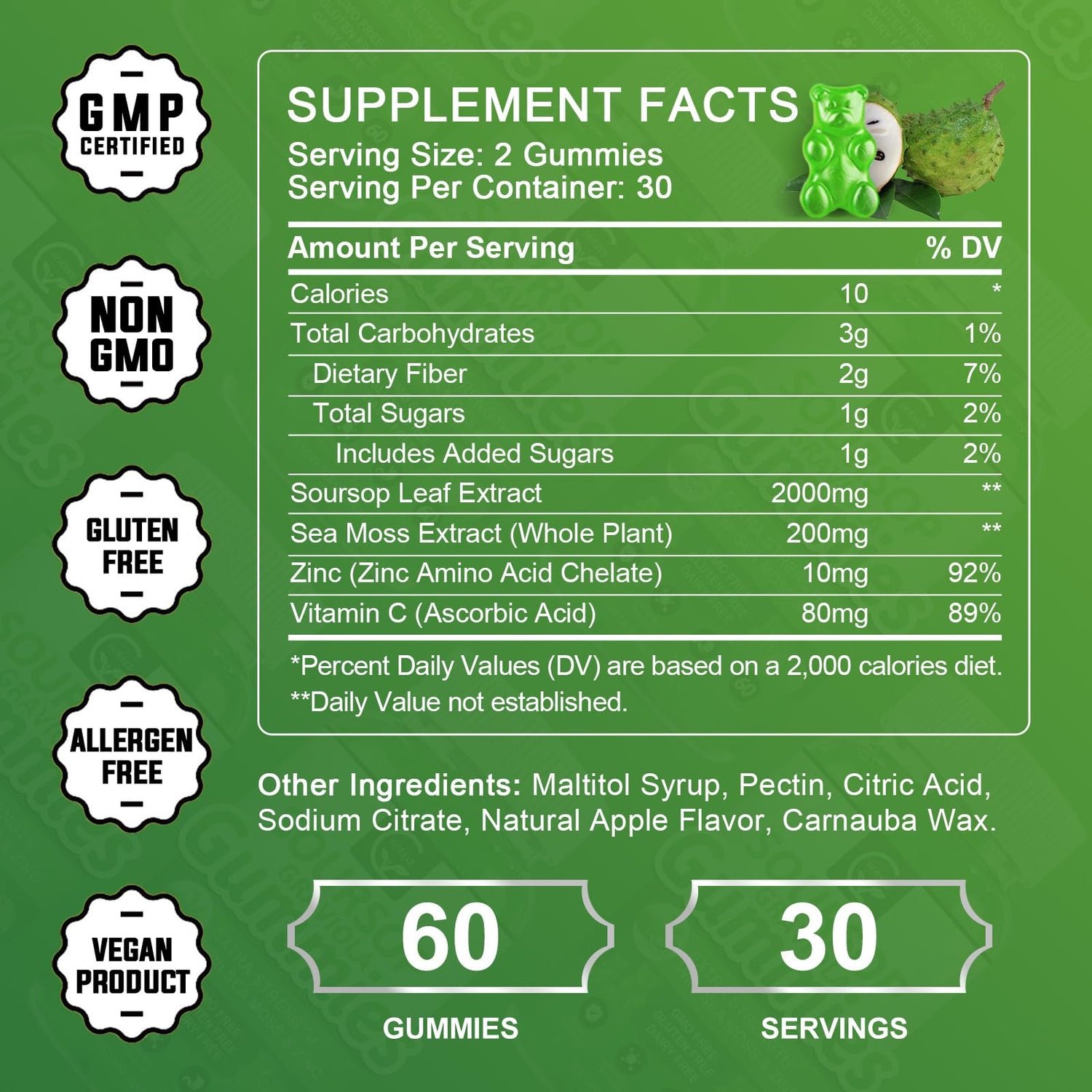 - A POWERFUL COMBINATION - Soursop gummies combine the pure essence of Soursop Leaf Extract with the added goodness of Vitamins C, Sea Moss & Zinc. A simple, pure combination of ingredients, maximizing the effectiveness and benefits of soursop. The inclusion of Vitamins C, Sea Moss & Zinc not only strengthens the immune system but also Supports Immunity, Liver & Digestive, and let you feel the power of health while enjoying delicious food!
