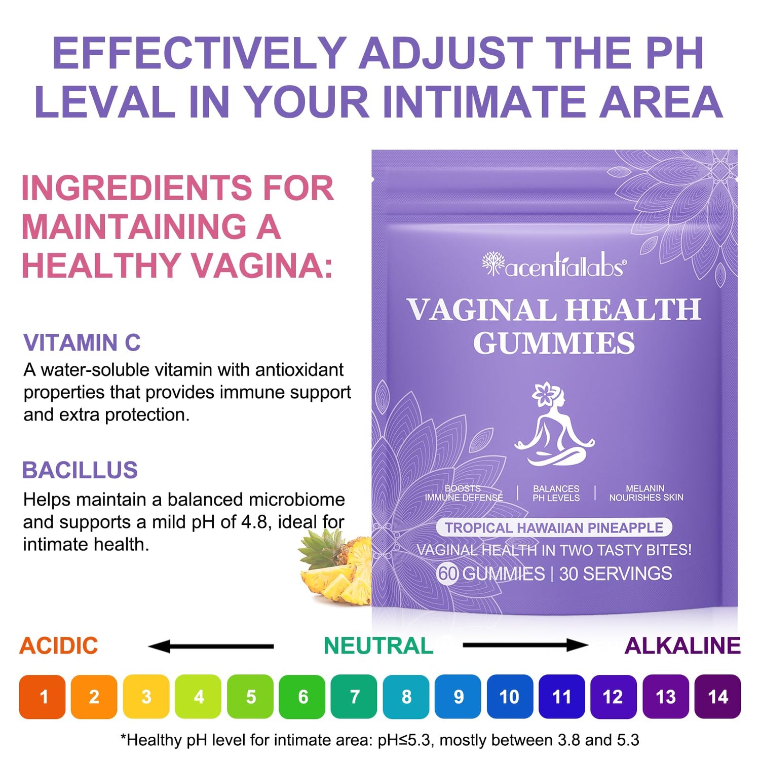 - Vaginal Probiotics For Women: Our Our vaginal health gummies support your pH balance, immune defences and vaginal flora in a delicious way.Enjoy 60 Premium Feminine Balance Gummies In Each Pouch, Crafted For Your Daily Wellness.Our Gummies Are Vegan, Gluten-Free And Halal.comprehensively enhance body immunity.