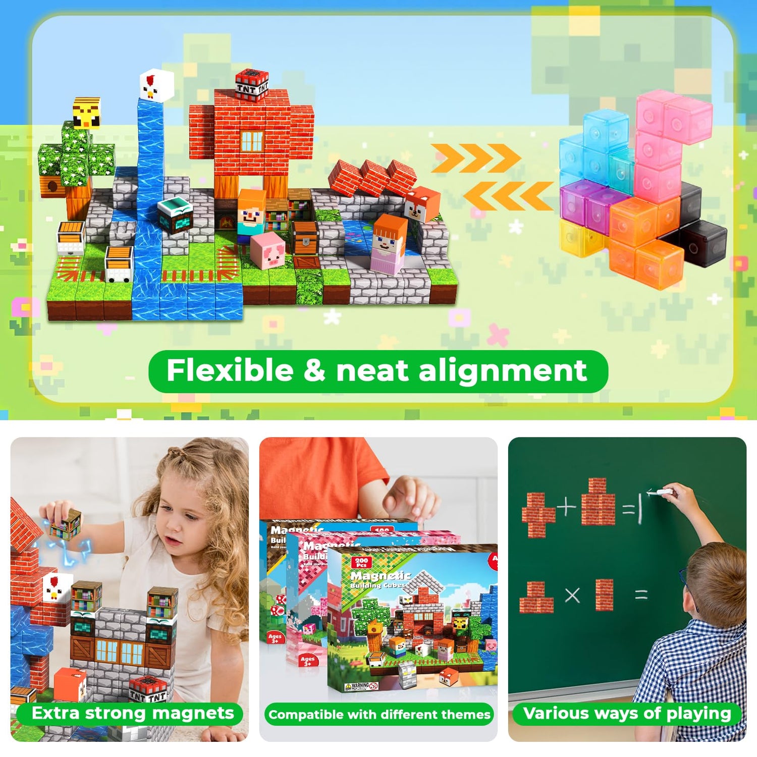 - 【High Quality Magnetic Blocks】Each magnetic building blocks features 8 powerful magnets to ensure a secure connection for complex designs. Whether building a towering house or an enchanted forest, creations will be sturdy and built to last.
