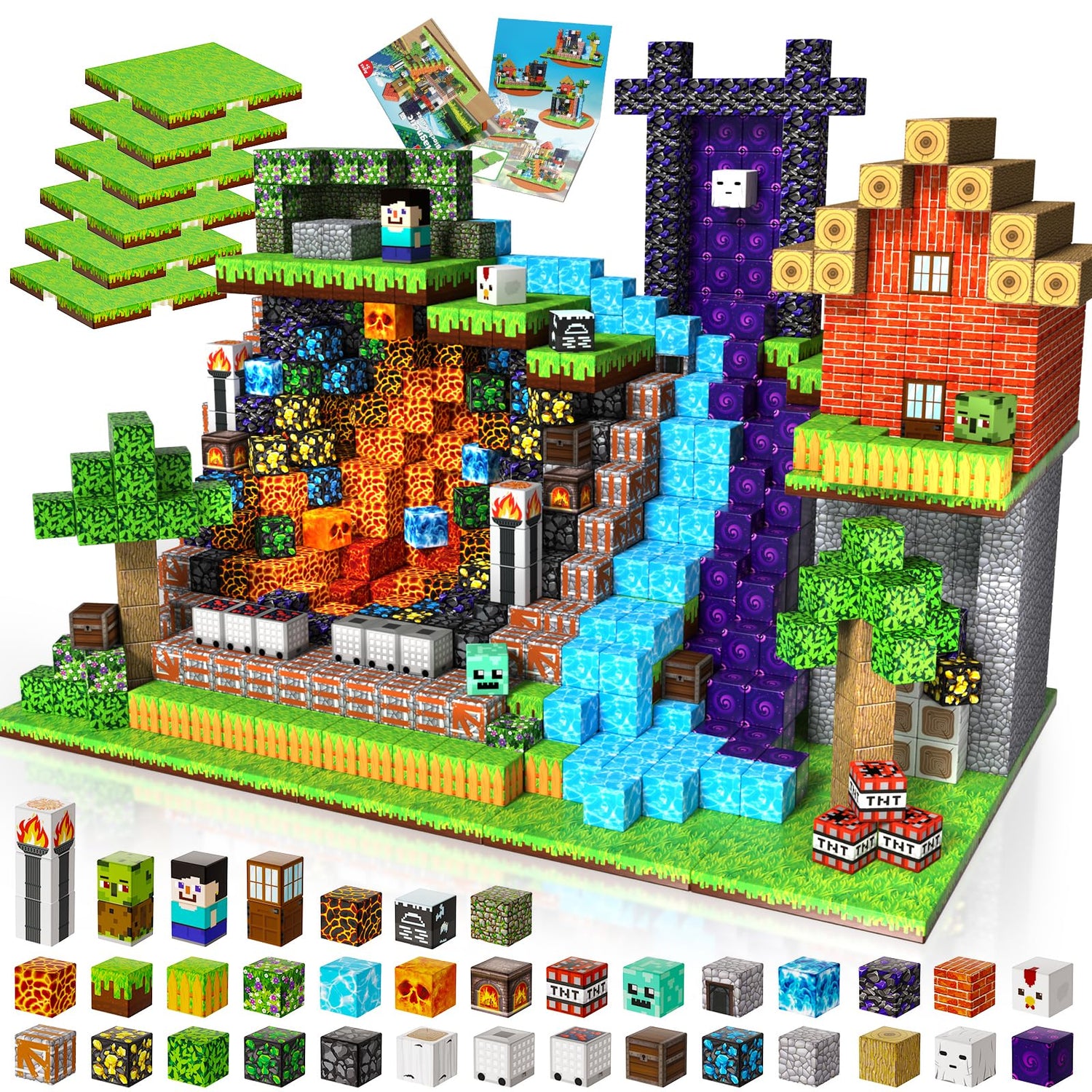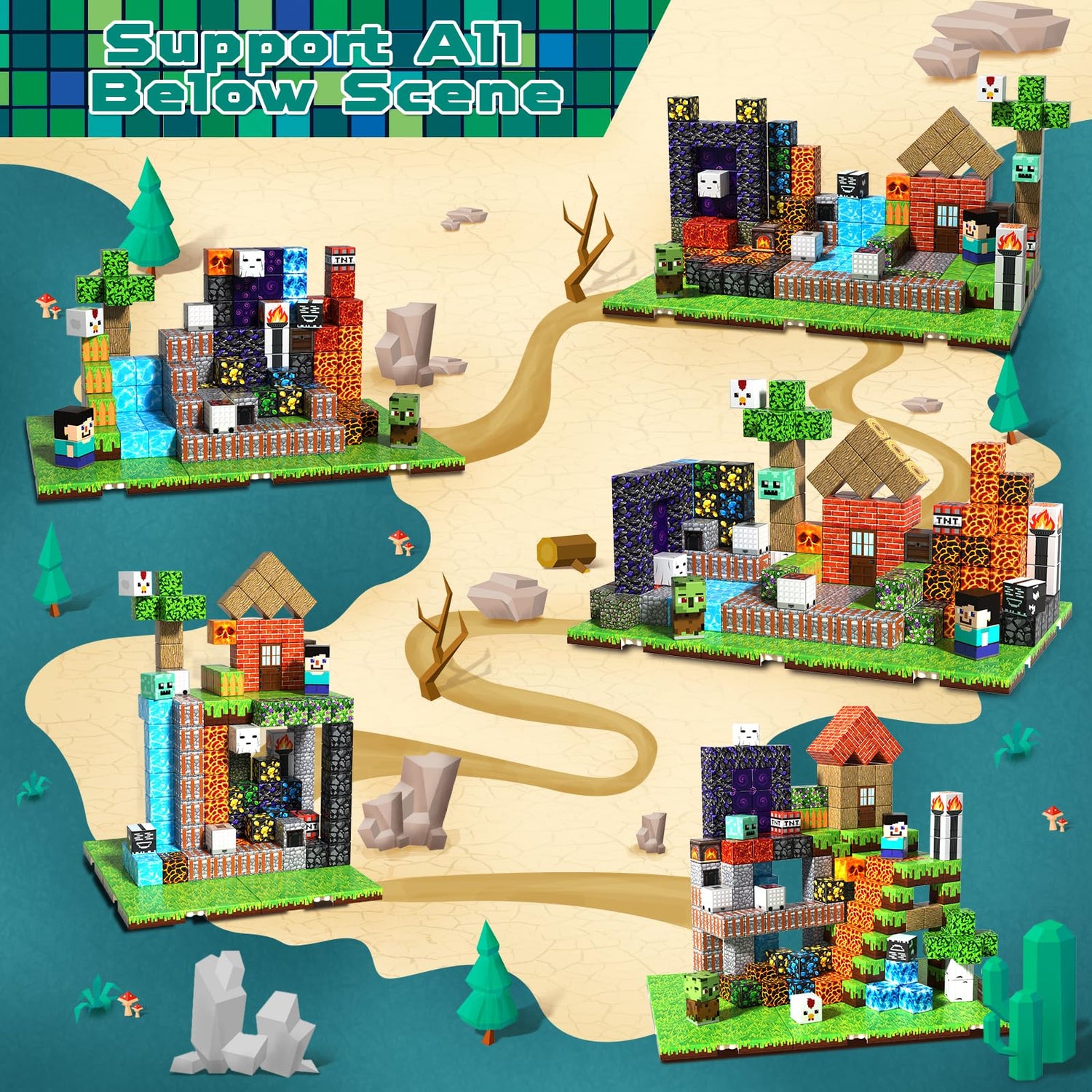 - 【200PCS Magnetic Blocks with 6 Magnetic-Compatible Bases】Step into a magical Forest Mine Adventure where little and adult builders craft enchanted houses, winding tracks or treasure caves with 200 magnetic cubes and 6 expandable plates (each fit 25 blocks (5x5)). Follow the Idea Booklet for guided builds or invent freely—every creation sparks new stories!