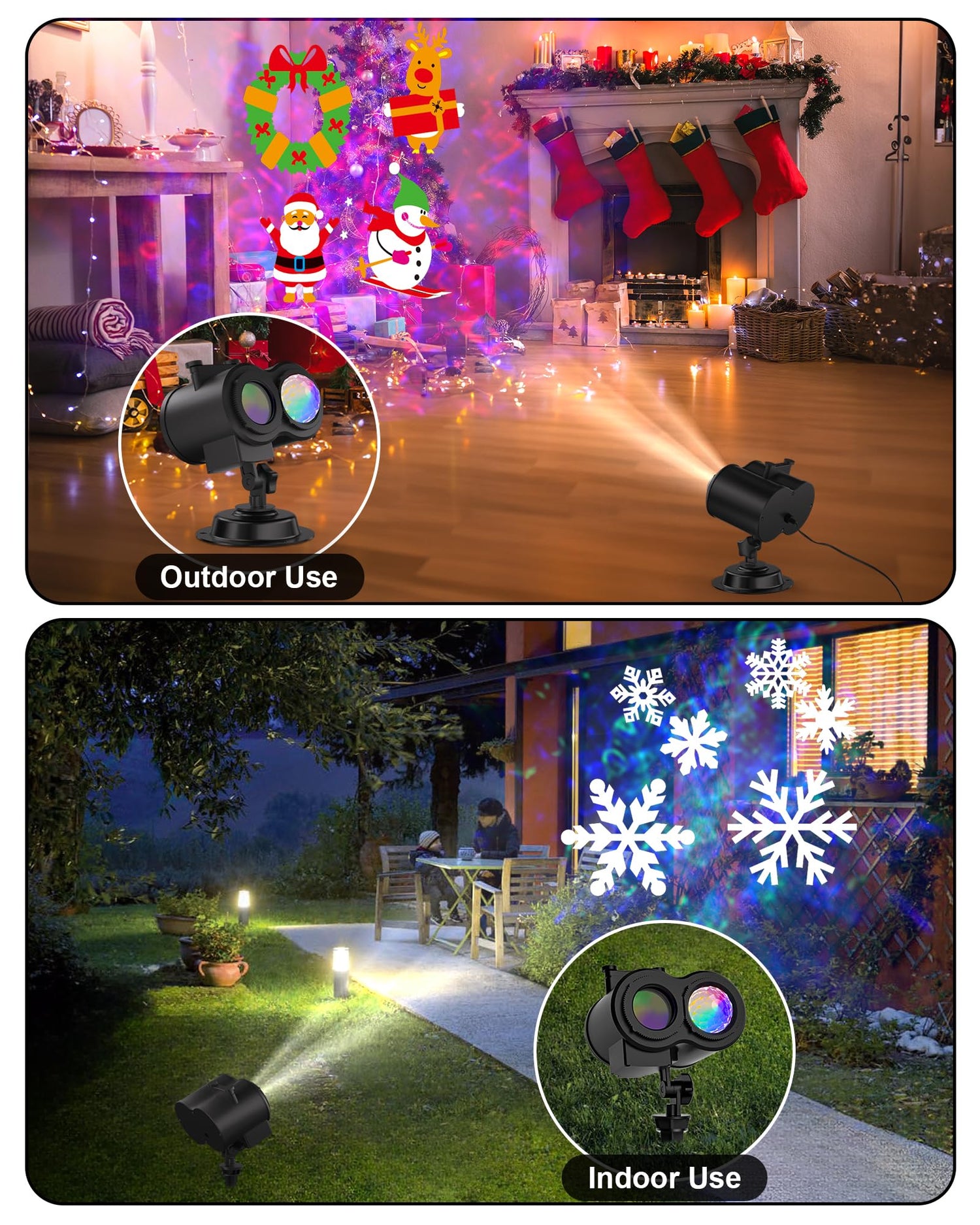 2025 Upgrade Christmas Halloween Projector Lights Outdoor, COOLWUFAN 2-in-1 Holiday Projector Lights Decorations, 30 Bright HD Effects (20 Slides) Projection Light for Xmas Party Garden Yard Decor