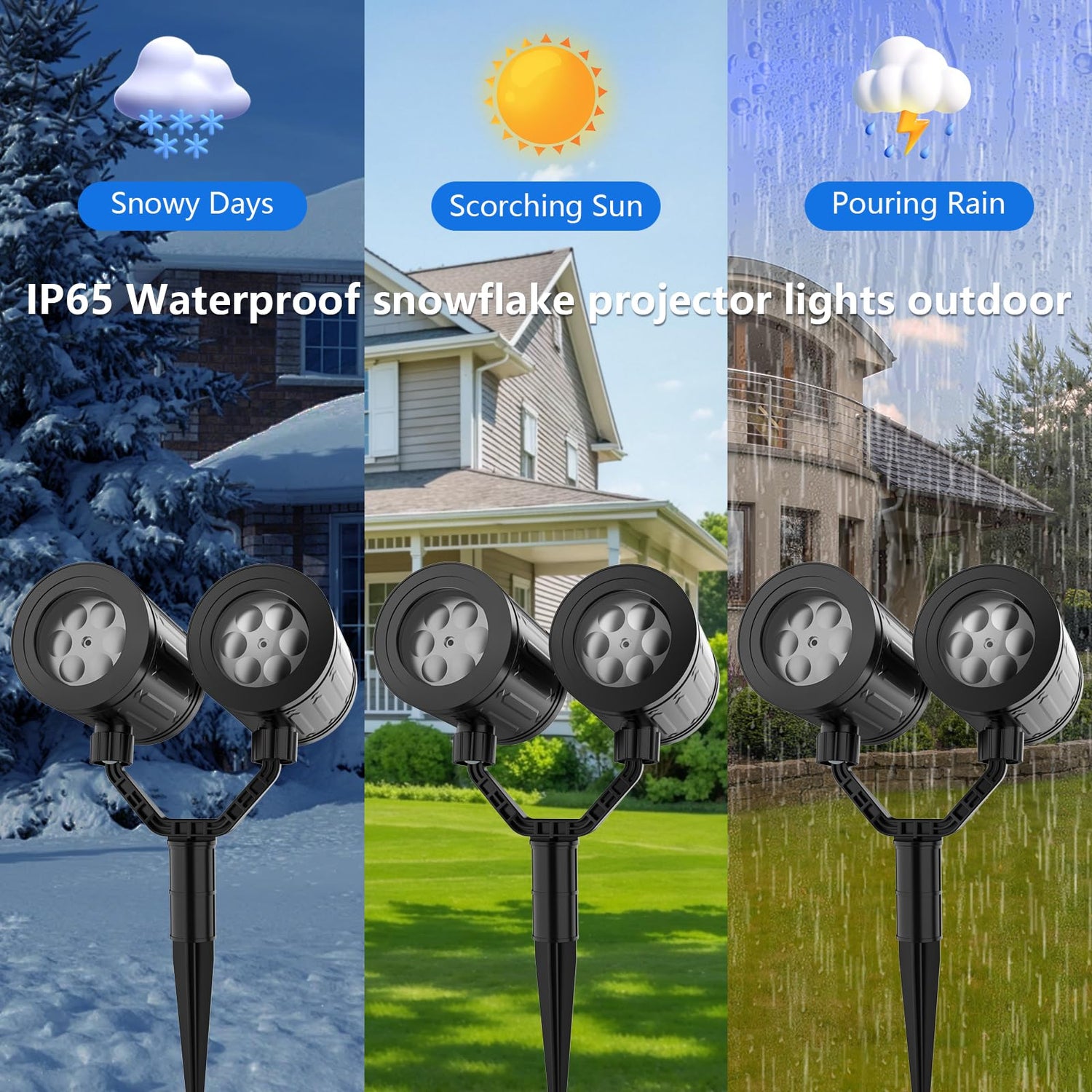 - 【Christmas Double-Head Snowflake Lights】: 2025 Christmas season, transform your home into a magical winter wonderland with our newly upgraded Christmas projection lights. Featuring a festive double-head snowflake projector, it casts four different dynamic snowflake patterns, creating a lifelike snowfall effect. Simply switch it on, and you and your family can enjoy the enchanting beauty of drifting snowflakes. Perfect for decorating your garden, house, lawn, or Christmas tree.
