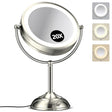 - 【Premium Quality Design】Crafted with 56 durable LEDs and premium materials, this lighted makeup mirror with magnification guarantees long-lasting performance. The explosion-proof glass and fingerprint-resistant pearl nickel material ensure durability and long-lasting use of this makeup mirror, making it a valuable addition to your beauty arsenal