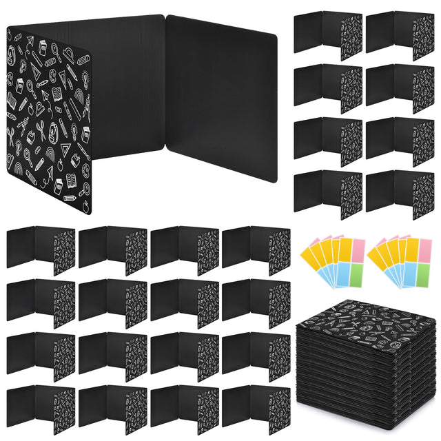 Details: 24 Pack Black Printing Privacy Floders for Student Desks - Durable Plastic Erasable - Testing Dividers for Classroom - Easy Clean Privacy Shields for Student - Includes Extra Labels