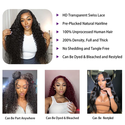 - 【Deep Wave Lace Front Wigs Lace Size】13x4 HD Transparent Swiss Lace, Soft and Breathable, Blends Perfectly into Your Skin, Large Lace Size Can do Middle Part, Side Part, and Can do High Ponytail& Bun, Styled as You Like.