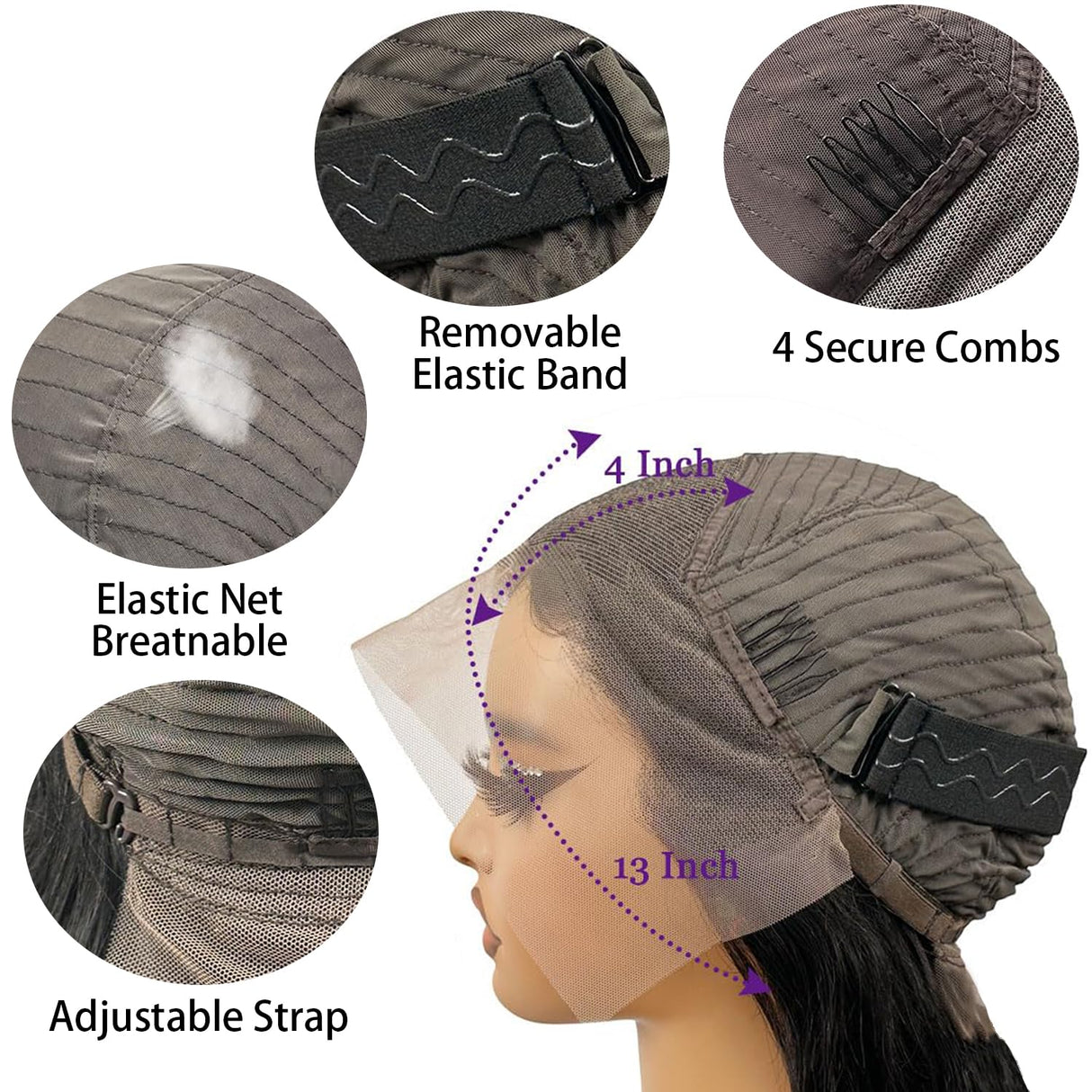- 【Human Hair Wigs Cap Size】Average Size(21.5-22.5 Inch) with 4 combs and adjustable straps inside. Easy to Adjust, Wear Comfortable and Breathable, Fits Most People's Head Well.