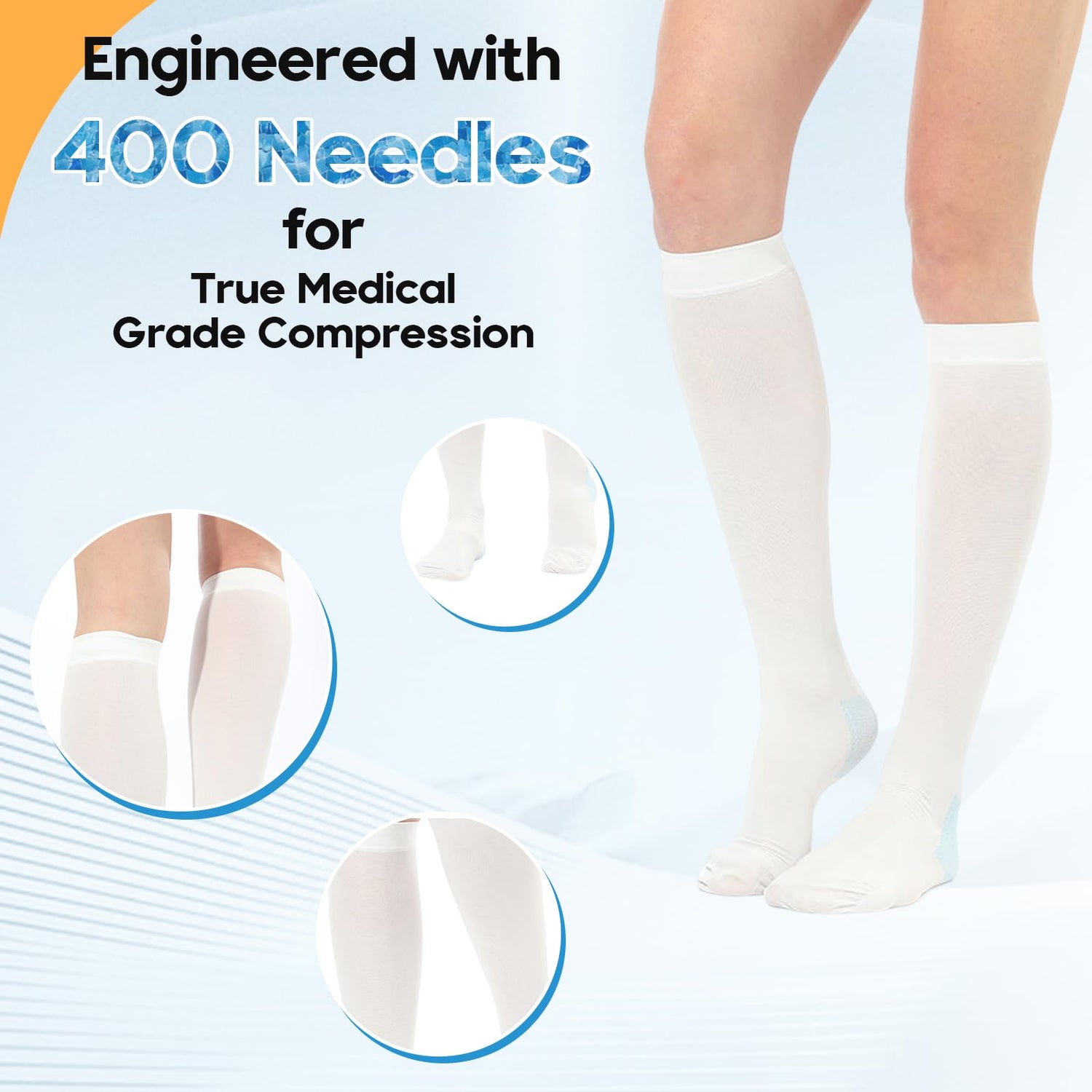 - Upgraded Compression Socks: Ted compression hose unlike any ordinary compression socks. The material of our compression socks are upgraded with nylon percentage from 40% to 85%. Delivers 360-degree stretch for greater flexibility and durability. The heel is reinforced, making it more comfortable to wear and not easy to fall off.