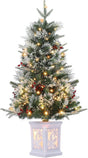 - 【3-Foot Festive Tree with Flocked Pot】This 3 ft Christmas Tree features a snow-flocked, weighted potted base that adds charm and stability to tabletops, entryways, and offices. High-brightness LEDs cast a warm glow that elevates any Christmas Decoration, while the compact footprint delivers seasonal cheer wherever space is limited.