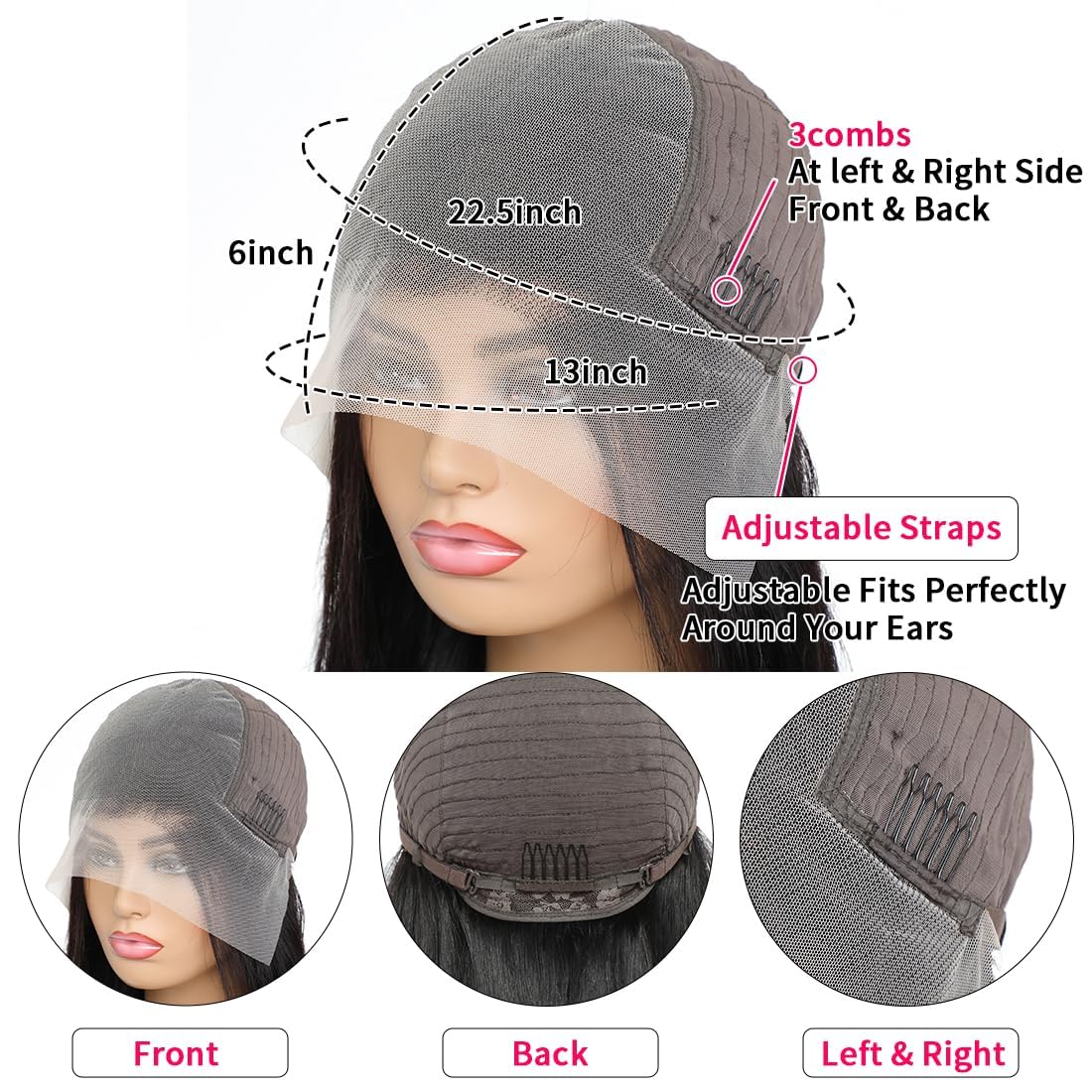 - 13x6 Lace Front Wigs Cap Size:Medium cap size (21.5-23.5 inches available) comes with 3 combs and adjustable straps, durable, comfortable to wear, easy to adjust, you will feel like your own hair.