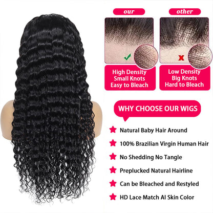 30 Inch 13x6 HD Deep Wave Lace Front Wigs Human Hair Pre Plucked 200% Density Transparent Deep Curly Lace Frontal Wigs With Baby Hair Glueless Wig For Women
