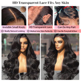 30 Inch 13x6 Lace Front Wigs Human Hair Body Wave HD Lace Frontal Wigs Human Hair Pre Plucked 180% Density Glueless Wig Human Hair for Women with Baby Hair Natural Black