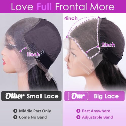 - 13x4 Lace Frontal Wigs Human Hair Cap Size: Medium Size Cap(21.5-22.5 inch) with Adjustable Straps and 4 Combs; Removable Elastic Band, Fit Most Head Perfectly.