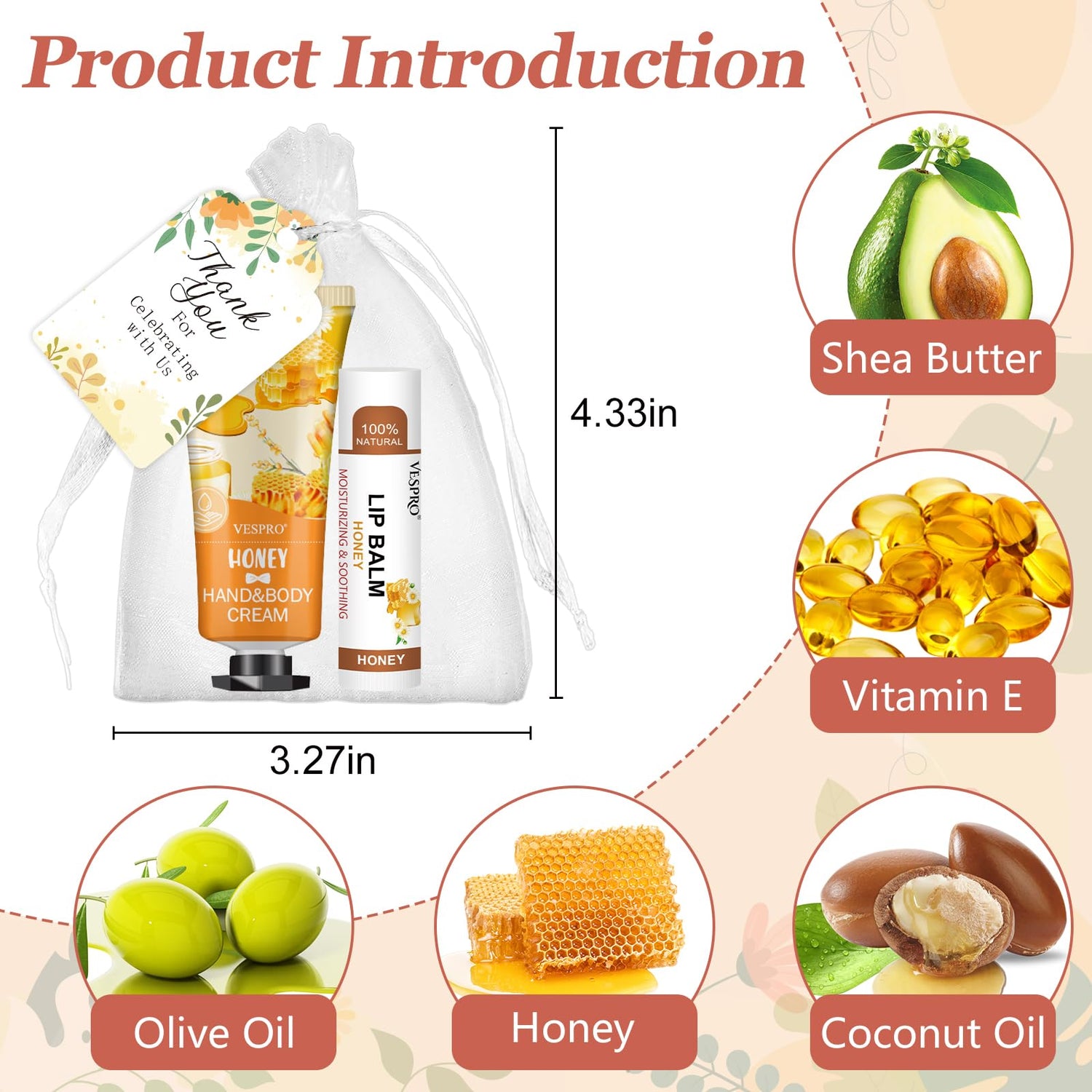 30 Sets Bulk Hand Cream and Bulk Lip Balm Gifts, Stocking Stuffers for Women, Wedding Favors for Guests with Thank You Card and Organza Bags, Christmas Gifts, Employee Appreciation Gifts