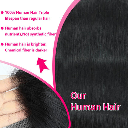 32 Inch Straight Lace Front Wigs Human Hair 200% Density 13x4 HD Transparent Lace Front Wigs for Women Glueless Brazilian Virgin Straight Lace Frontal Wigs Pre Plucked with Baby Hair Natural Black