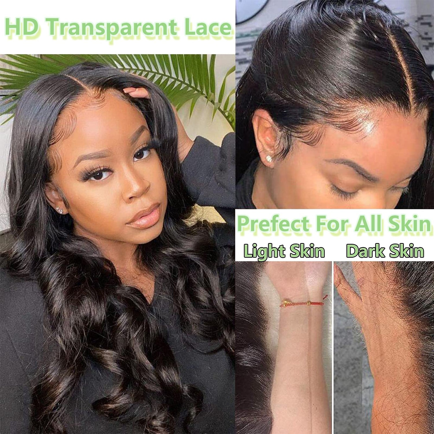 - Glueless Wigs Human Hair Pre Plucked: Body Wave 360 Lace Front Wigs Human Hair Glueless Lace Match All Skin Well, More Natural and Real Looking. Pre-plucked Hairlines with Baby Hair Around Make More Realistic and Gorgeous.