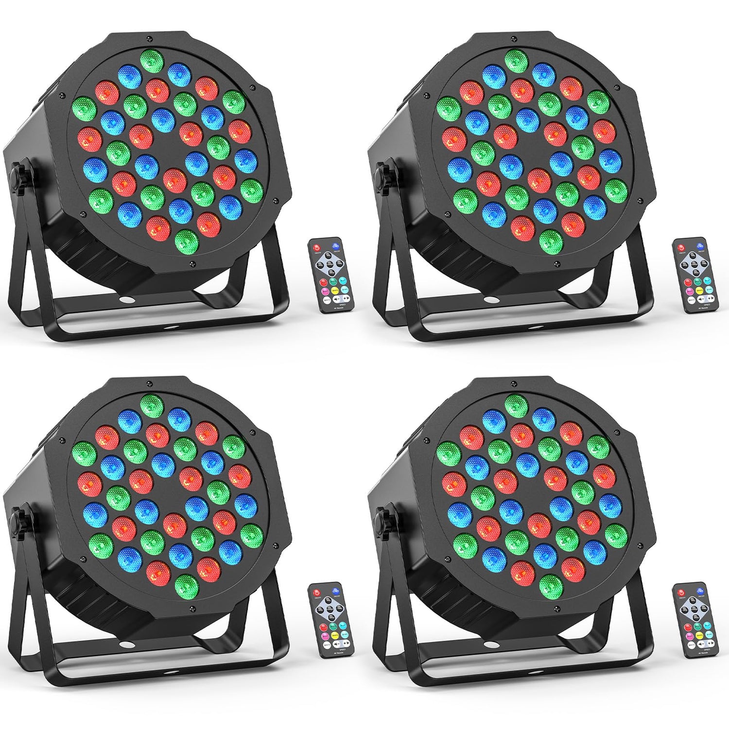 36LED Stage Lights RGB Par Light DMX Lighting Stage Uplights for Events Music Dances Shows Party Wedding Church School Christmas Club (4 Packs)