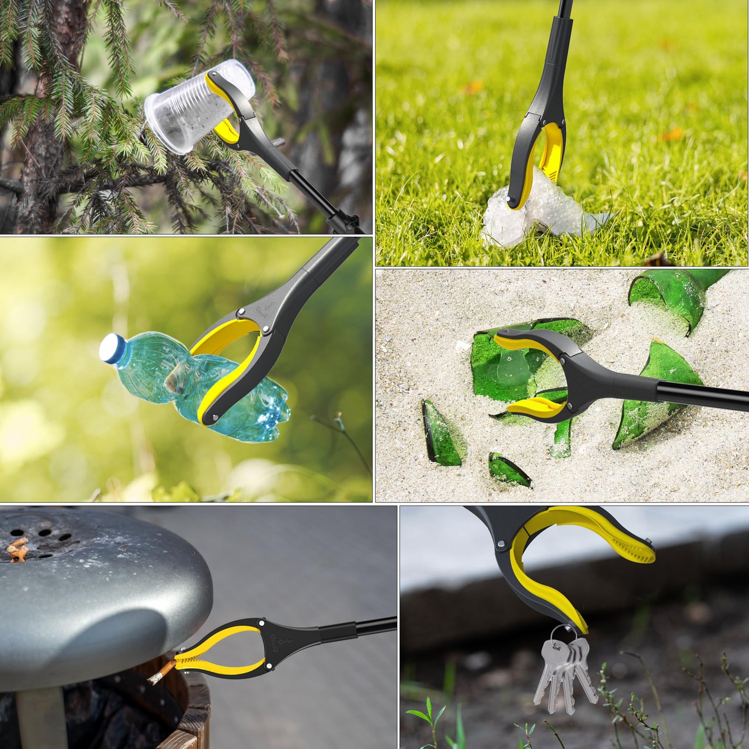 - 4 Inch &360°Rotating Anti-Slip Jaw- ->The Grabber can open up to a 4 inch size, making it suitable for small and heavy items. It works well for picking up tiny pieces like plastic or paper, as well as cans, bottles, and tidying up toys. The device is also useful for reaching items in high places and tight spots like closet shelves, laundry machines, and under beds.